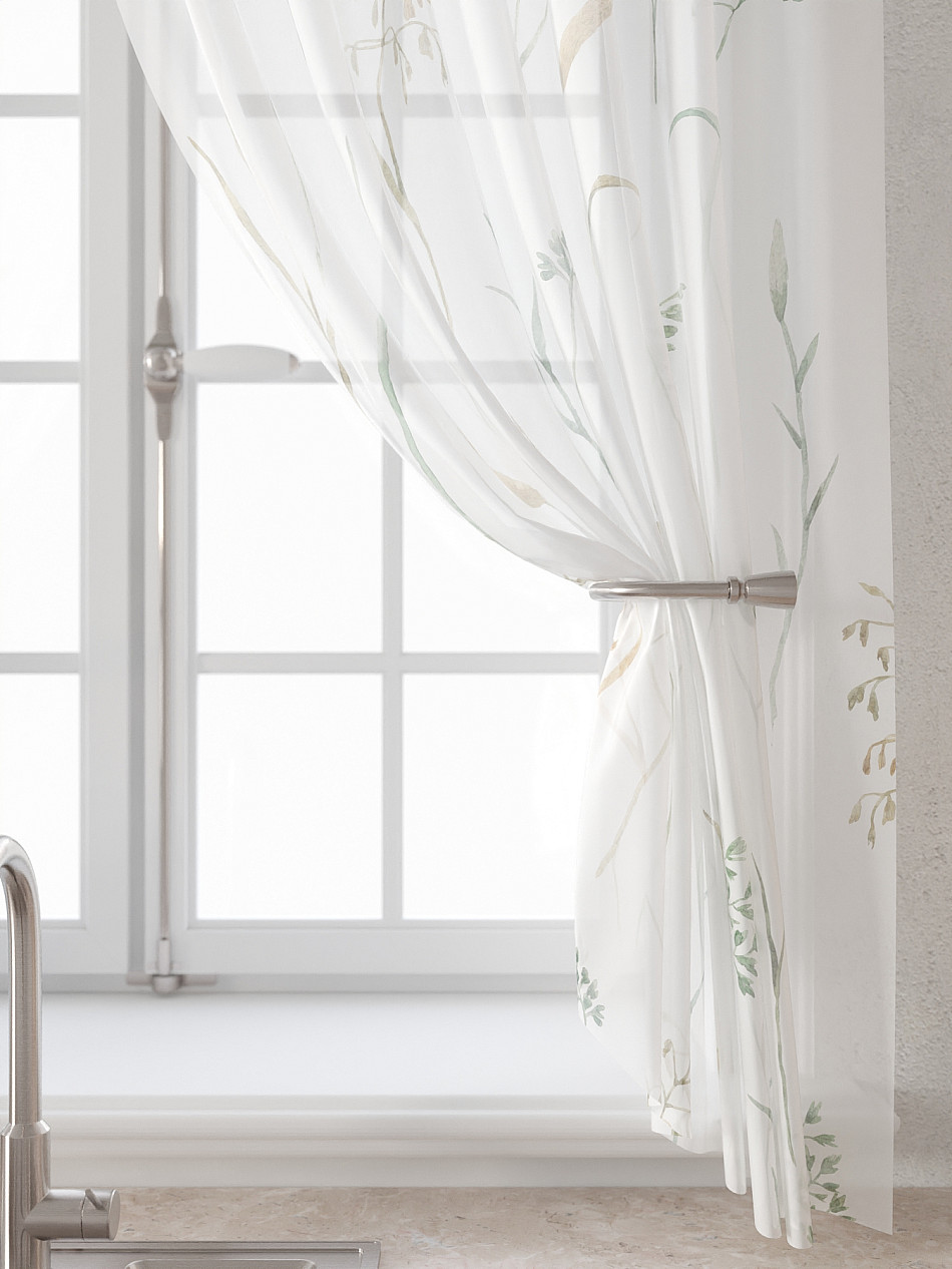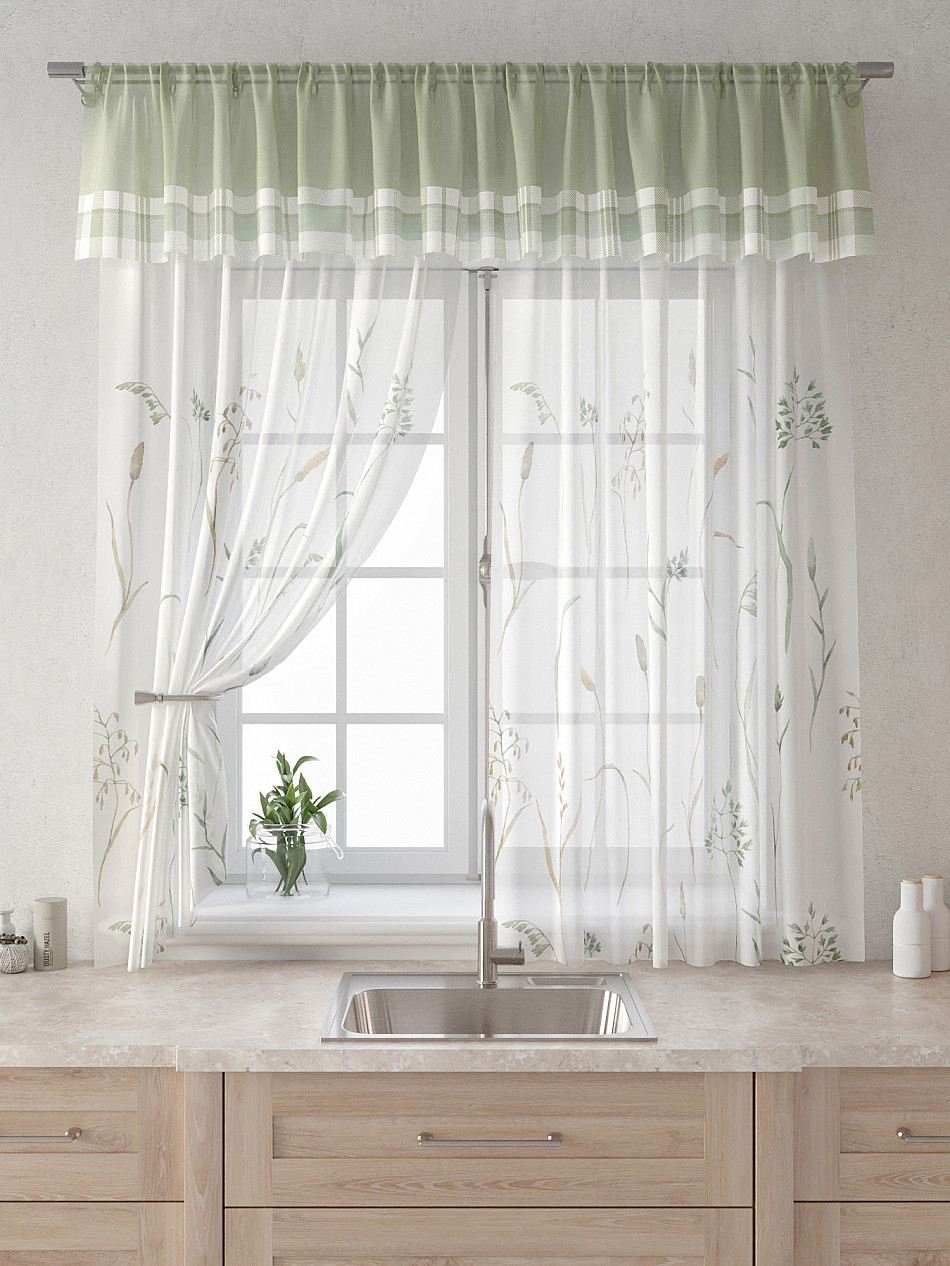 Вуаль 150х180 см. — 2 шт., Ламбрекен 300х40 см. — 1 шт. Комплект штор из вуали оформлены печатным рисунком. Печатный рисунок дает широкие возможности обновить интерьер фактически не требуя ремонта за счет огромного выбора. Ткани с печатным рисунком безопасны и не содержат токсичных веществ. Не смотря на то, что материал легкий, он имеет высокую плотность, мало загрязнятся и не требует особого ухода даже после стирки, что важно для кухонных занавесок. Тюль не выцветает, не растягивается, превосходно драпируются, образуя струящиеся складки. Прекрасное решение для создания красоты и уюта с помощью уникальных дизайнов.