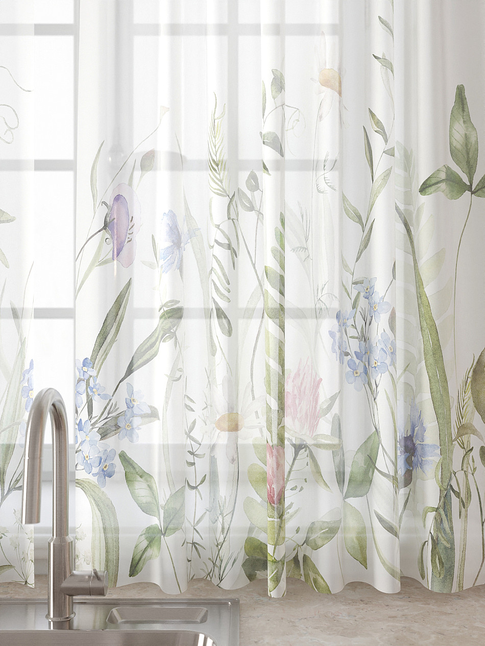 Вуаль 150х180 см. — 2 шт., Ламбрекен 300х40 см. — 1 шт. Комплект штор из вуали оформлены печатным рисунком. Печатный рисунок дает широкие возможности обновить интерьер фактически не требуя ремонта за счет огромного выбора. Ткани с печатным рисунком безопасны и не содержат токсичных веществ. Не смотря на то, что материал легкий, он имеет высокую плотность, мало загрязнятся и не требует особого ухода даже после стирки, что важно для кухонных занавесок. Тюль не выцветает, не растягивается, превосходно драпируются, образуя струящиеся складки. Прекрасное решение для создания красоты и уюта с помощью уникальных дизайнов.