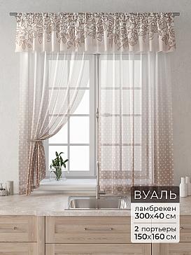 Вуаль 150х160 см — 2 шт., Ламбрекен 300х40 см — 1 шт. ( Изменить высоту) Крепление: шторная лента (крючки), кулиска Подробнее