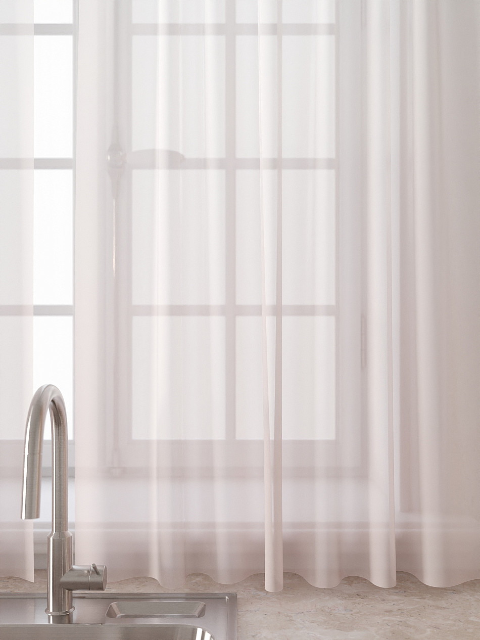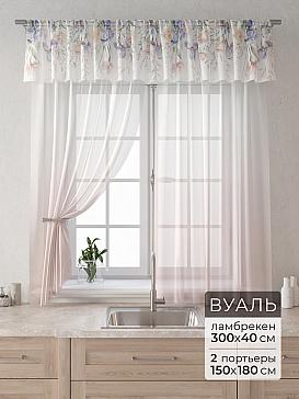 Вуаль 150х180 см — 2 шт., Ламбрекен 300х40 см — 1 шт. ( Изменить высоту) Крепление: шторная лента (крючки), кулиска Подробнее