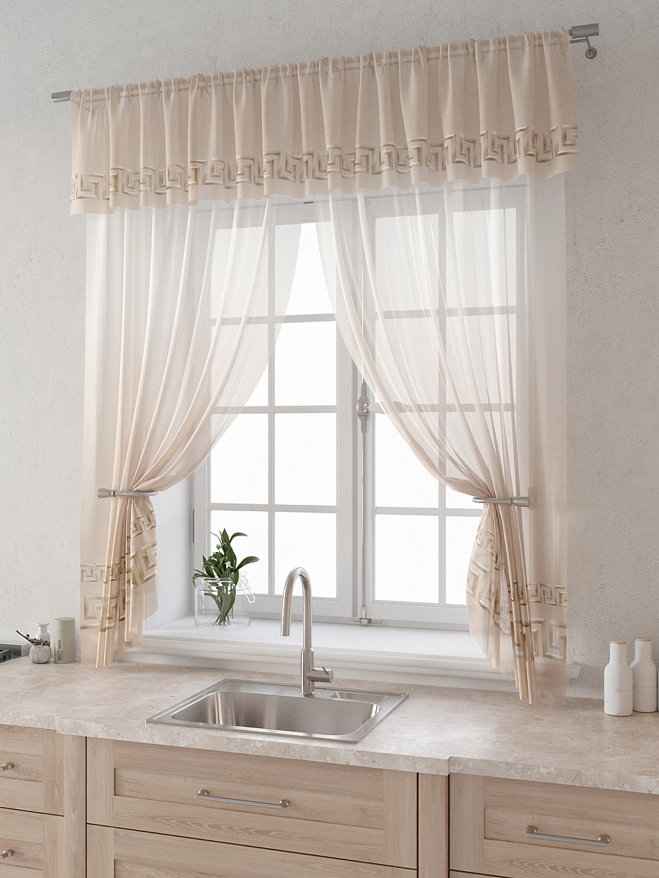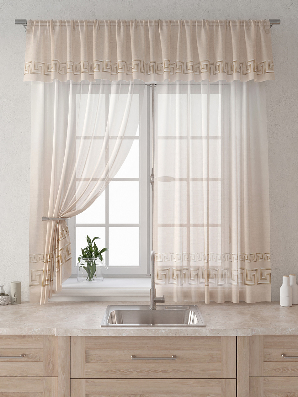 Вуаль 150х180 см. — 2 шт., Ламбрекен 300х40 см. — 1 шт. Комплект штор из вуали оформлены печатным рисунком. Печатный рисунок дает широкие возможности обновить интерьер фактически не требуя ремонта за счет огромного выбора. Ткани с печатным рисунком безопасны и не содержат токсичных веществ. Не смотря на то, что материал легкий, он имеет высокую плотность, мало загрязнятся и не требует особого ухода даже после стирки, что важно для кухонных занавесок. Тюль не выцветает, не растягивается, превосходно драпируются, образуя струящиеся складки. Прекрасное решение для создания красоты и уюта с помощью уникальных дизайнов.