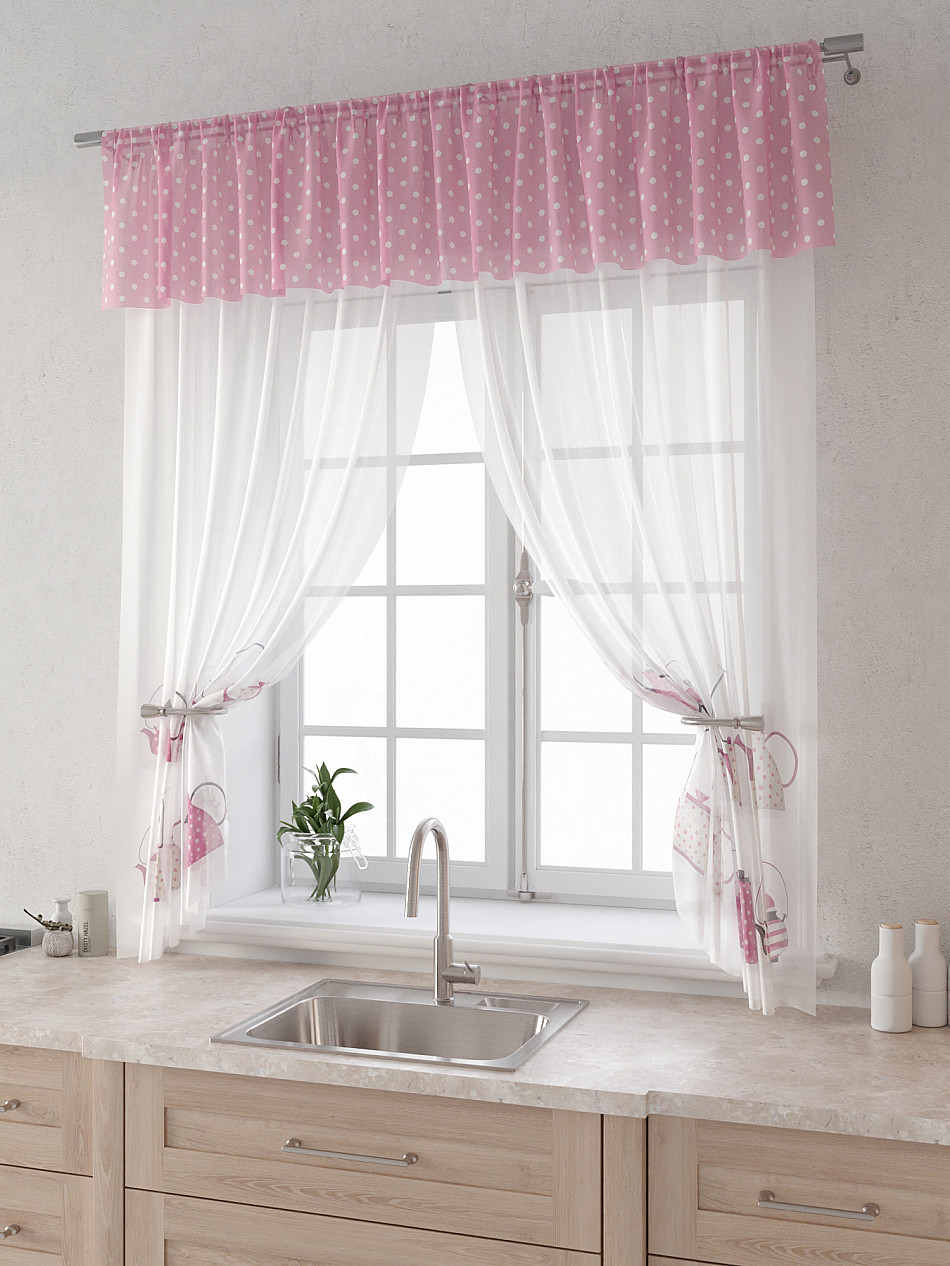 Вуаль 150х180 см. — 2 шт., Ламбрекен 300х40 см. — 1 шт. Комплект штор из вуали оформлены печатным рисунком. Печатный рисунок дает широкие возможности обновить интерьер фактически не требуя ремонта за счет огромного выбора. Ткани с печатным рисунком безопасны и не содержат токсичных веществ. Не смотря на то, что материал легкий, он имеет высокую плотность, мало загрязнятся и не требует особого ухода даже после стирки, что важно для кухонных занавесок. Тюль не выцветает, не растягивается, превосходно драпируются, образуя струящиеся складки. Прекрасное решение для создания красоты и уюта с помощью уникальных дизайнов.