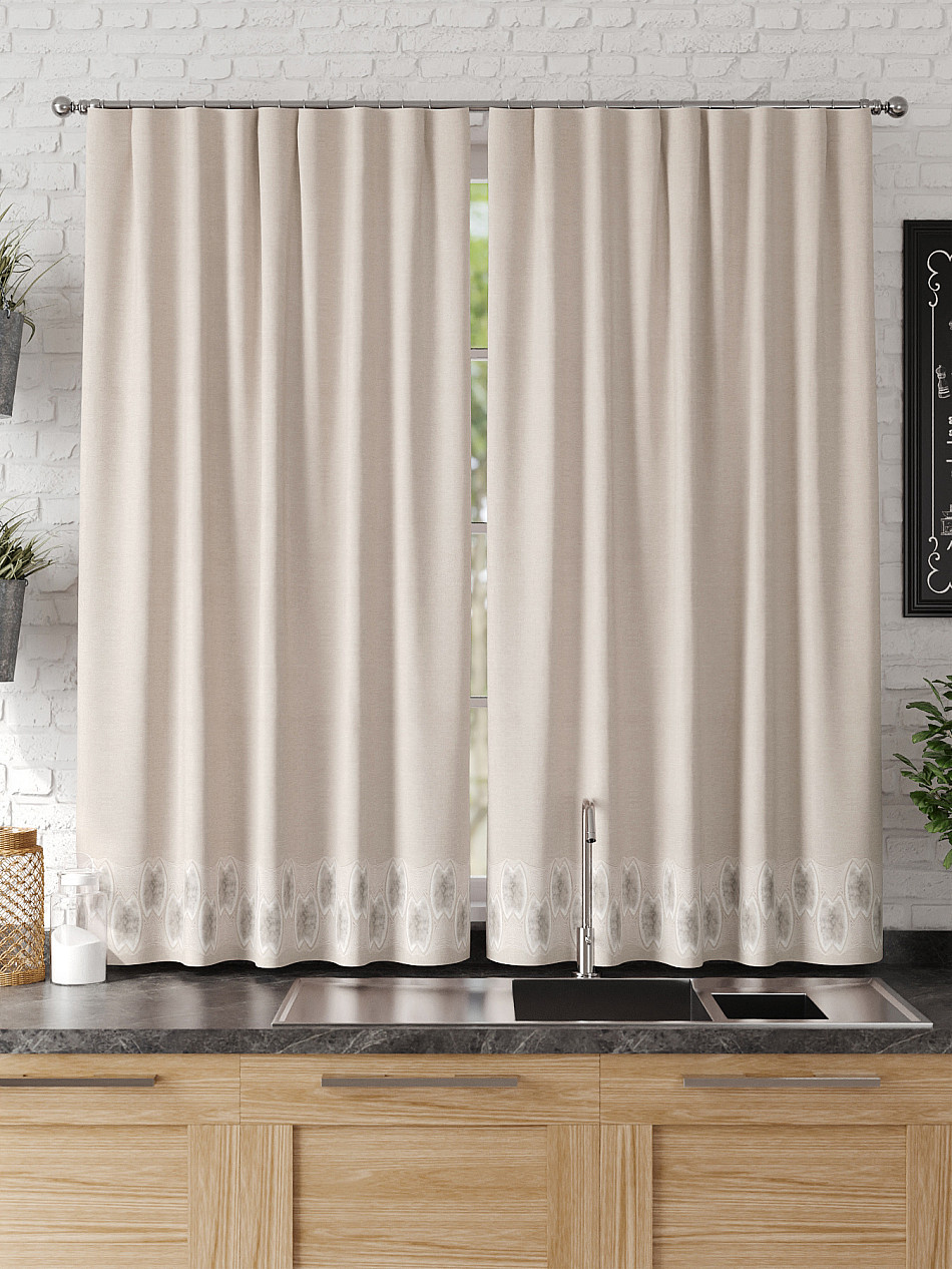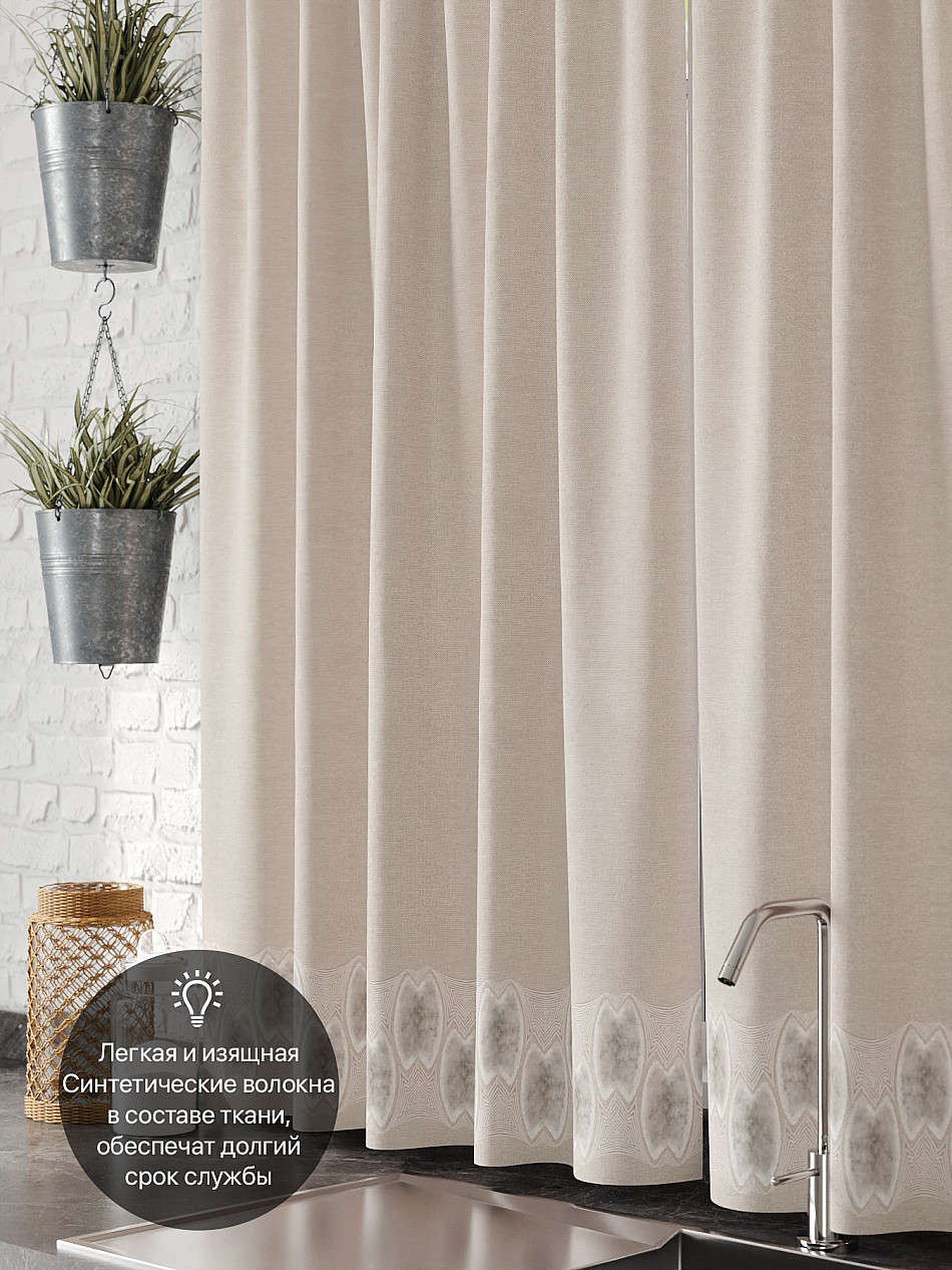 Портьеры 2 шт: Комплект штор из легкой портьерной ткани (габардин) оформлен печатным рисунком. Печатный рисунок дает широкие возможности обновить интерьер фактически нет требуя ремонта за счет огромного выбора. Ткани с печатным рисунком безопасны и не содержат токсичных веществ. Не смотря на то что, материал легкий, он имеет высокую плотность, мало загрязнятся и не требует особого ухода даже после стирки, что важно для кухонных занавесок. Шторы не выцветают, не растягиваются, превосходно драпируются, образуя струящиеся складки. Прекрасное решение для создания красоты и уюта с помощью уникальных дизайнов.