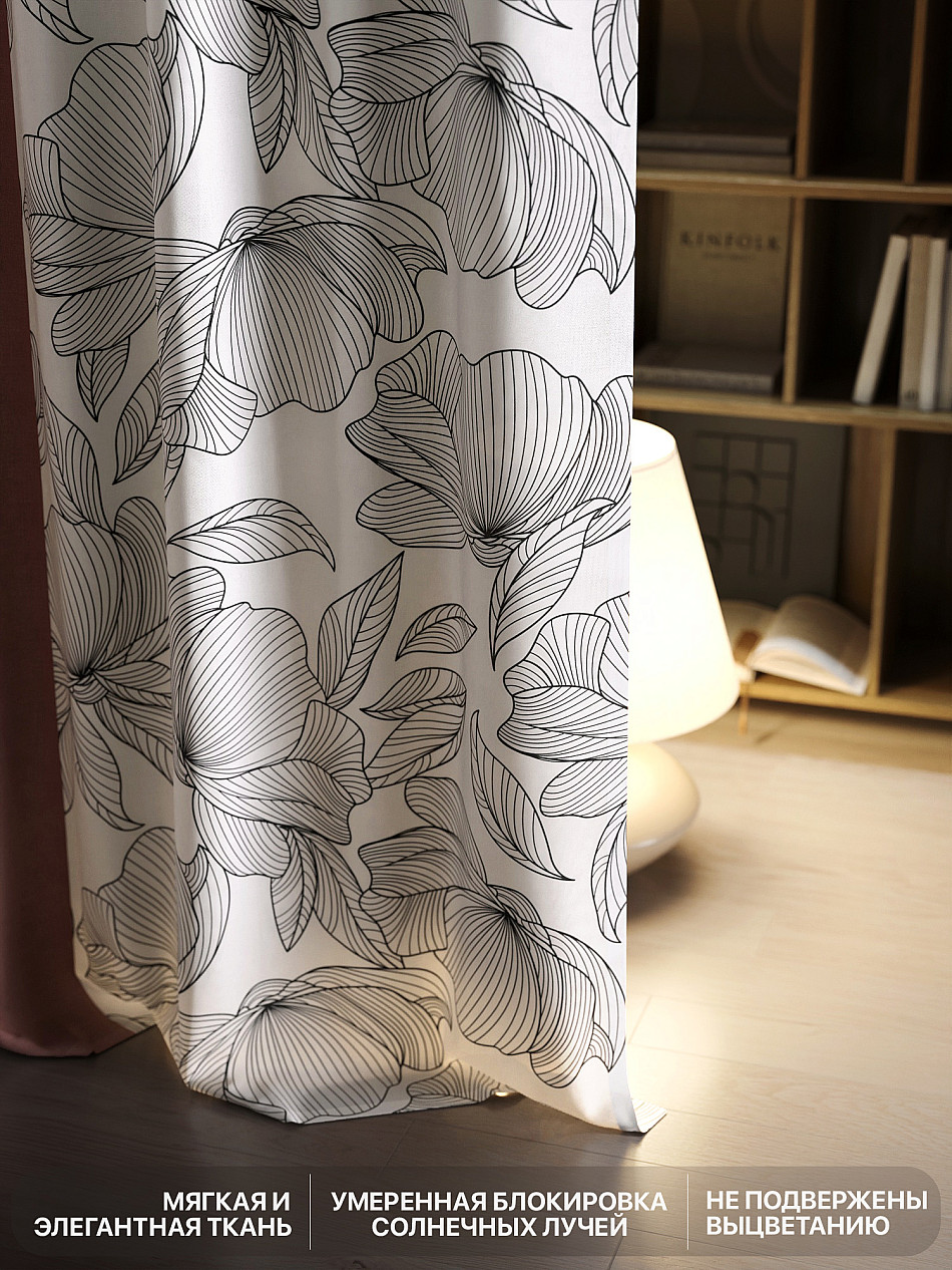 Портьера 150х250 см — 2 шт. ( Изменить высоту) Крепление: шторная лента (крючки), кулиска Подробнее