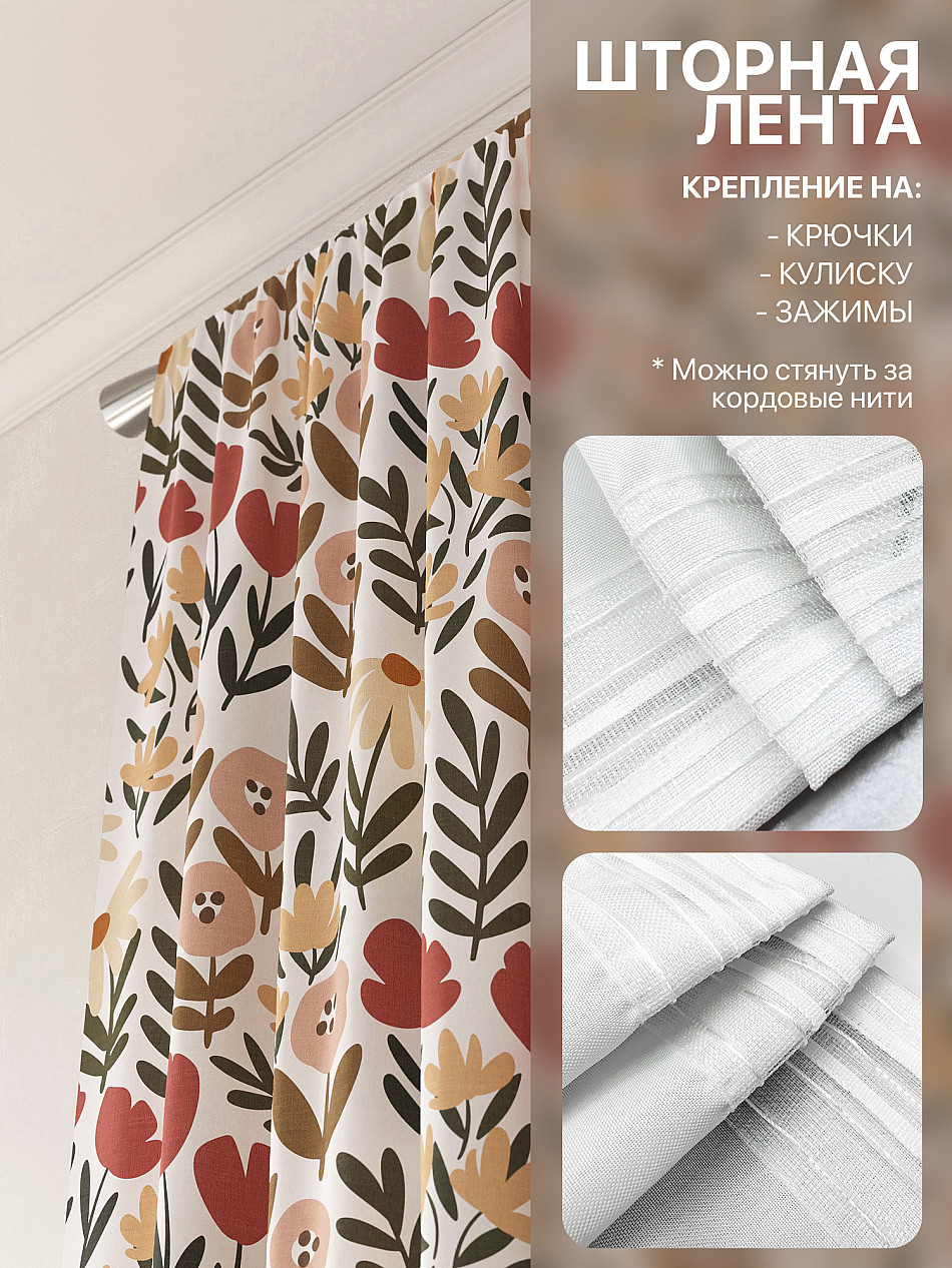 - Вид крепления Шторная лента (крючки) , Кулиска