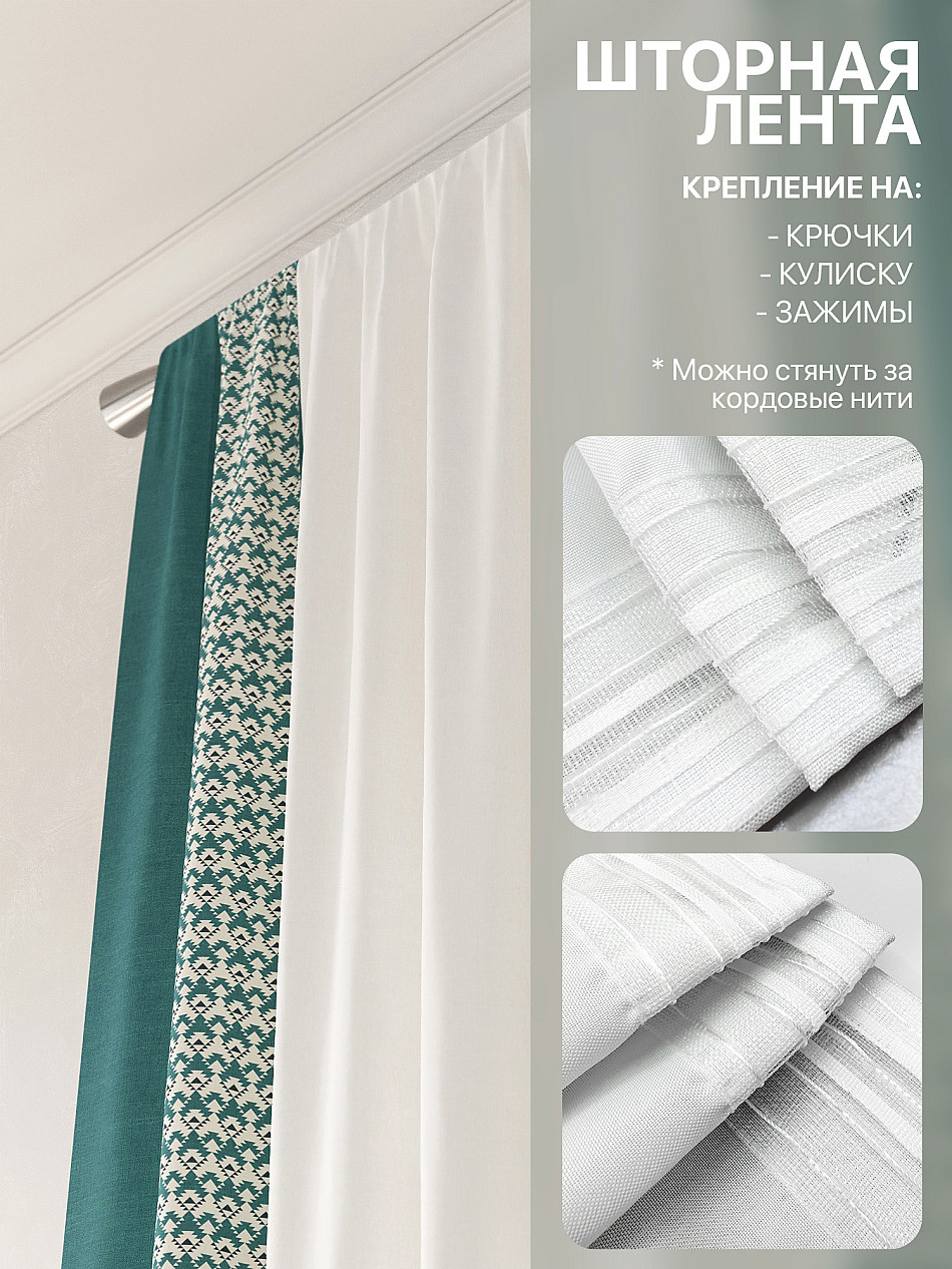 - Вид крепления Шторная лента (крючки) , Кулиска