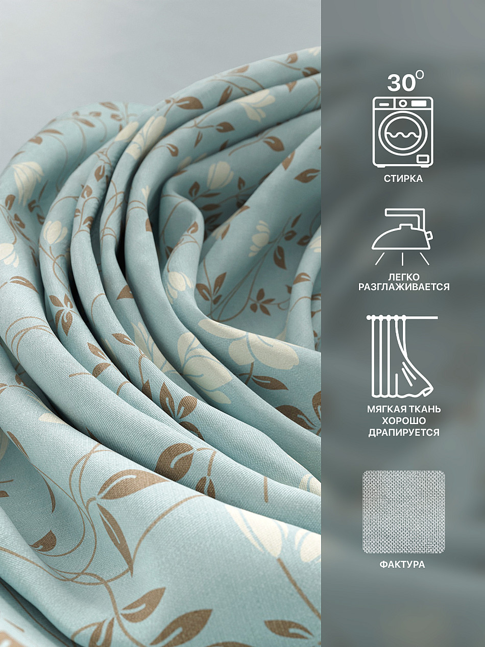 Портьера 150х250 см — 2 шт. ( Изменить высоту) Крепление: шторная лента (крючки), кулиска Подробнее