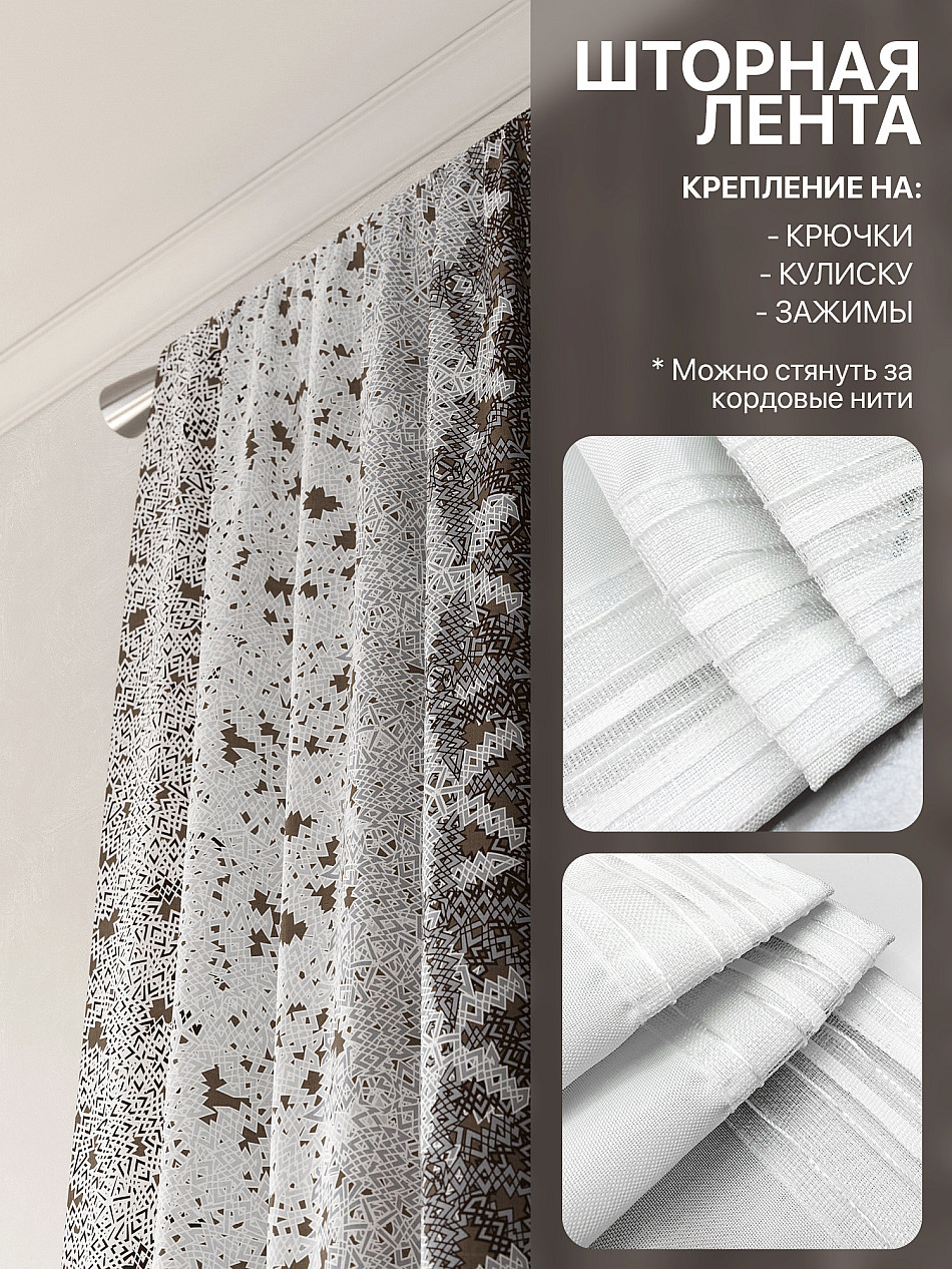 - Вид крепления Шторная лента (крючки) , Кулиска