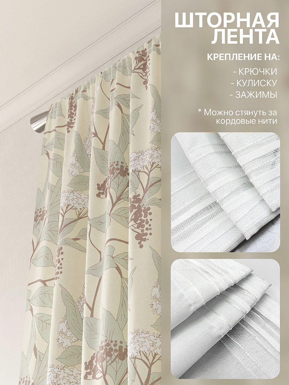 - Вид крепления Шторная лента (крючки) , Кулиска