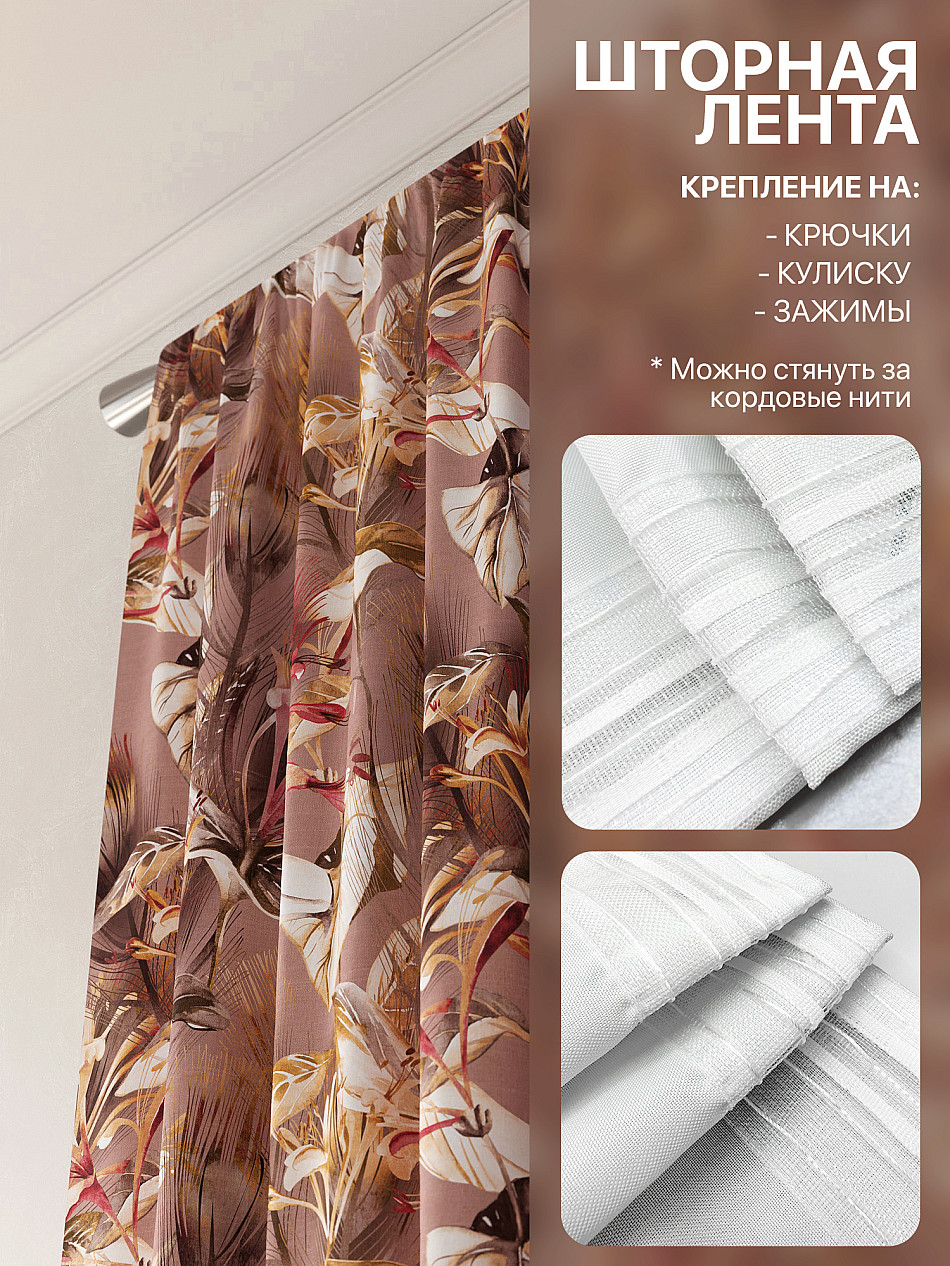 Портьера 150х250 см — 2 шт. ( Изменить высоту) Крепление: шторная лента (крючки), кулиска Подробнее
