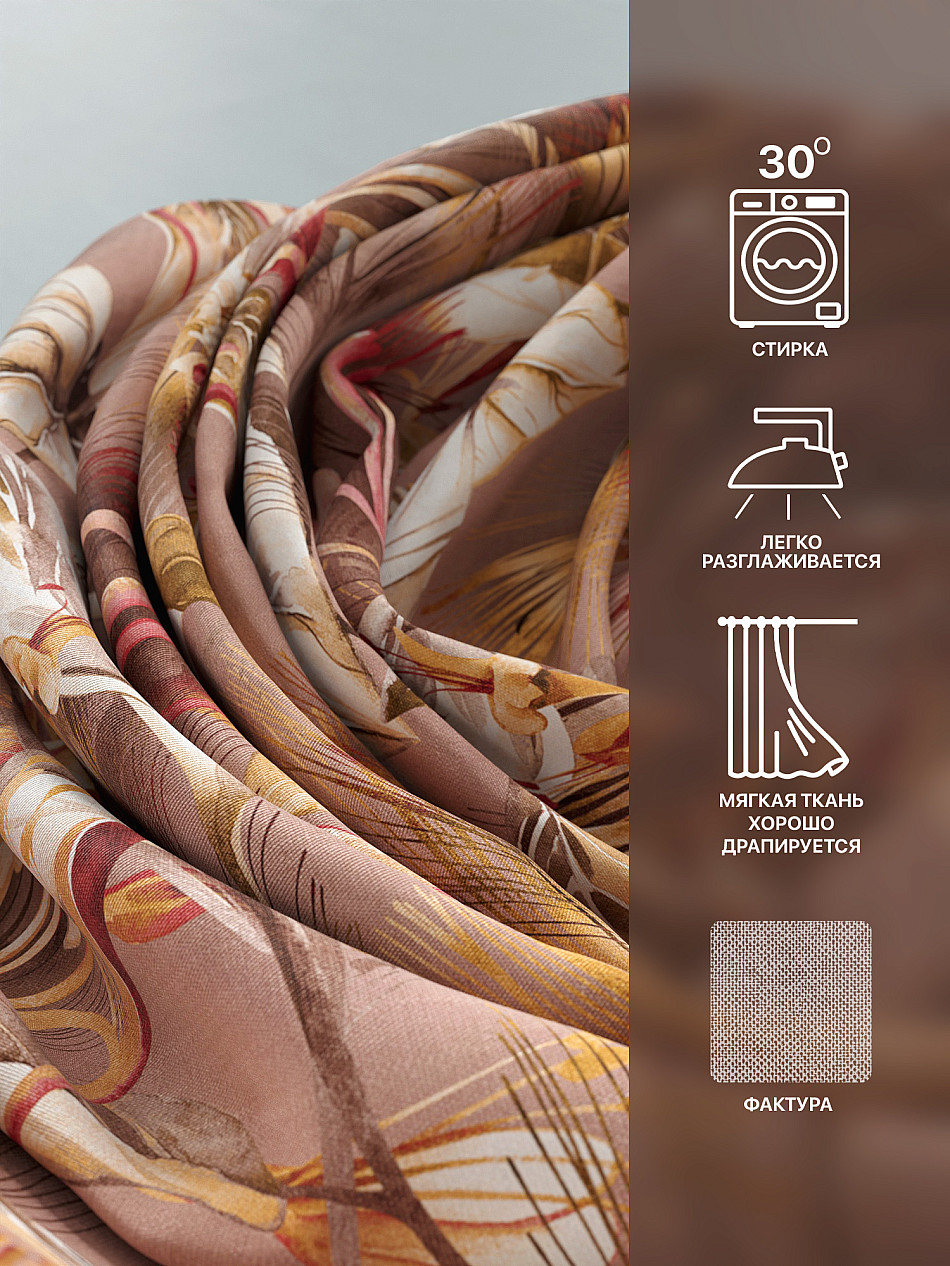 Портьеры 2 шт: Комплект штор из портьерной ткани с печатным рисунком. Фактура ткани прекрасно гармонирует с любым интерьером, а печатный рисунок дает широкие возможности обновить интерьер, фактически не требуя ремонта, за счет огромного выбора. Ткань износостойкая и не требует особого ухода, превосходно драпируется образуя струящиеся складки. Прекрасное решение для создания красоты и уюта с помощью уникальных дизайнов.