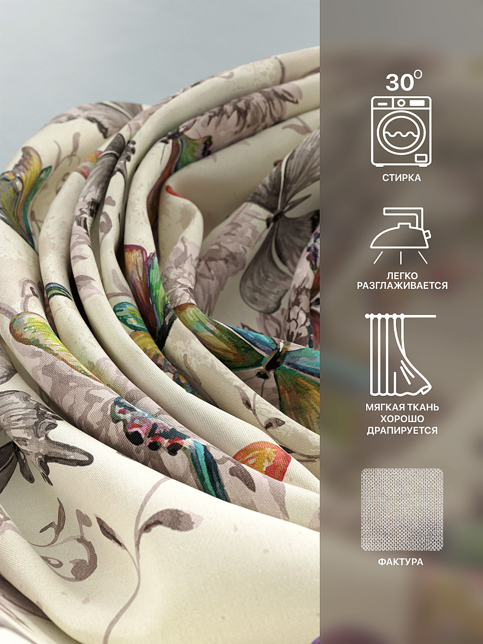 Портьеры 2 шт: Комплект штор из портьерной ткани с печатным рисунком. Фактура ткани прекрасно гармонирует с любым интерьером, а печатный рисунок дает широкие возможности обновить интерьер, фактически не требуя ремонта, за счет огромного выбора. Ткань износостойкая и не требует особого ухода, превосходно драпируется образуя струящиеся складки. Прекрасное решение для создания красоты и уюта с помощью уникальных дизайнов.