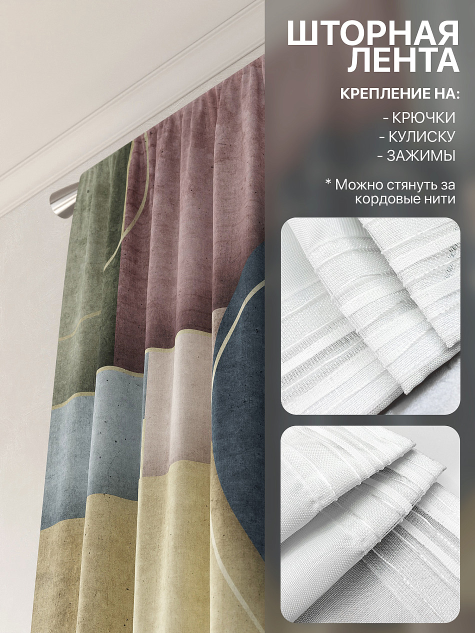 Портьера 150х250 см — 2 шт. ( Изменить высоту) Крепление: шторная лента (крючки), кулиска Подробнее