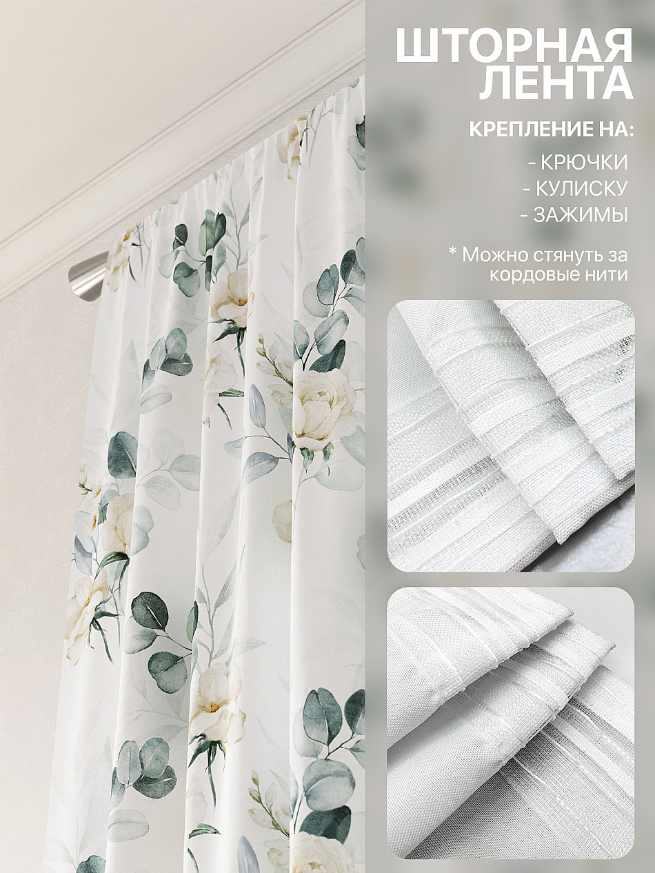 - Вид крепления Шторная лента (крючки) , Кулиска