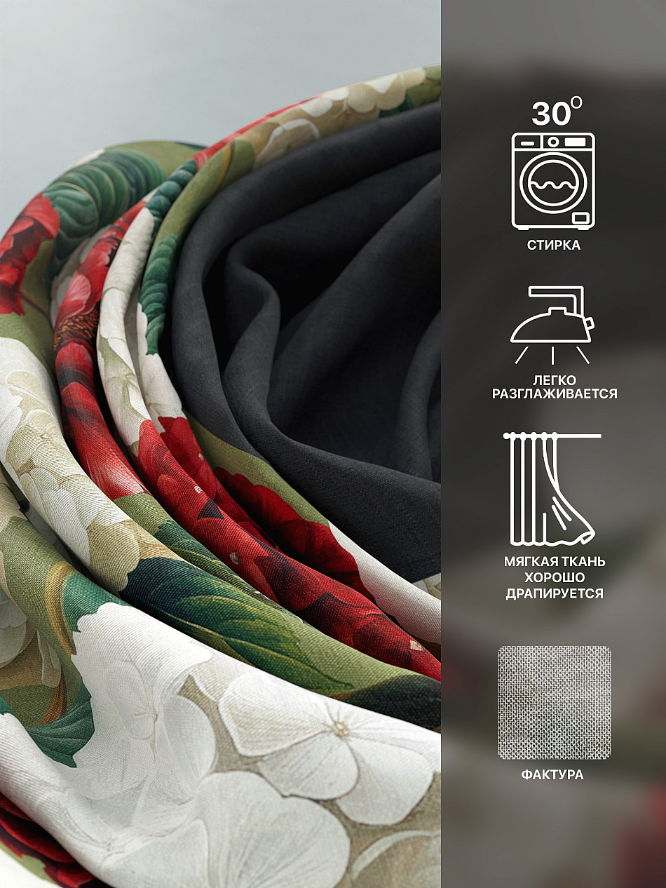 Портьера 150х250 см — 2 шт. ( Изменить высоту) Крепление: шторная лента (крючки), кулиска Подробнее