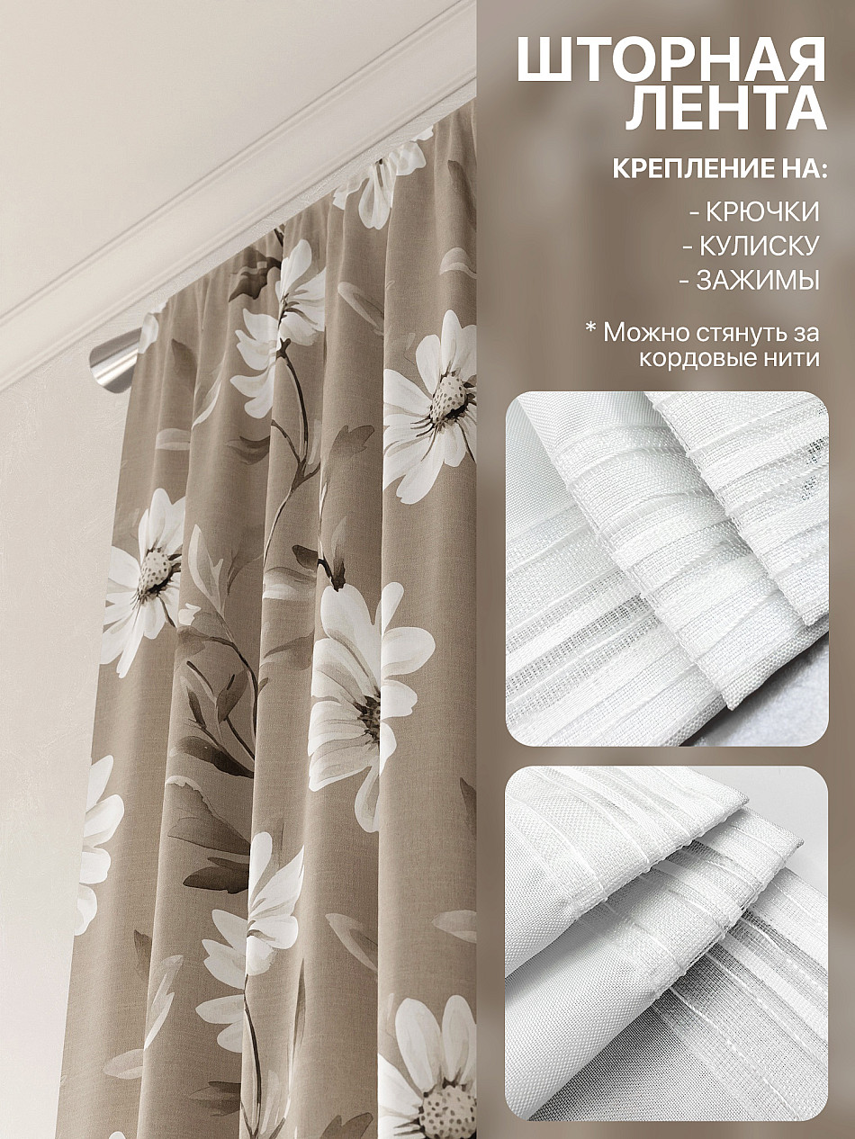 - Вид крепления Шторная лента (крючки) , Кулиска