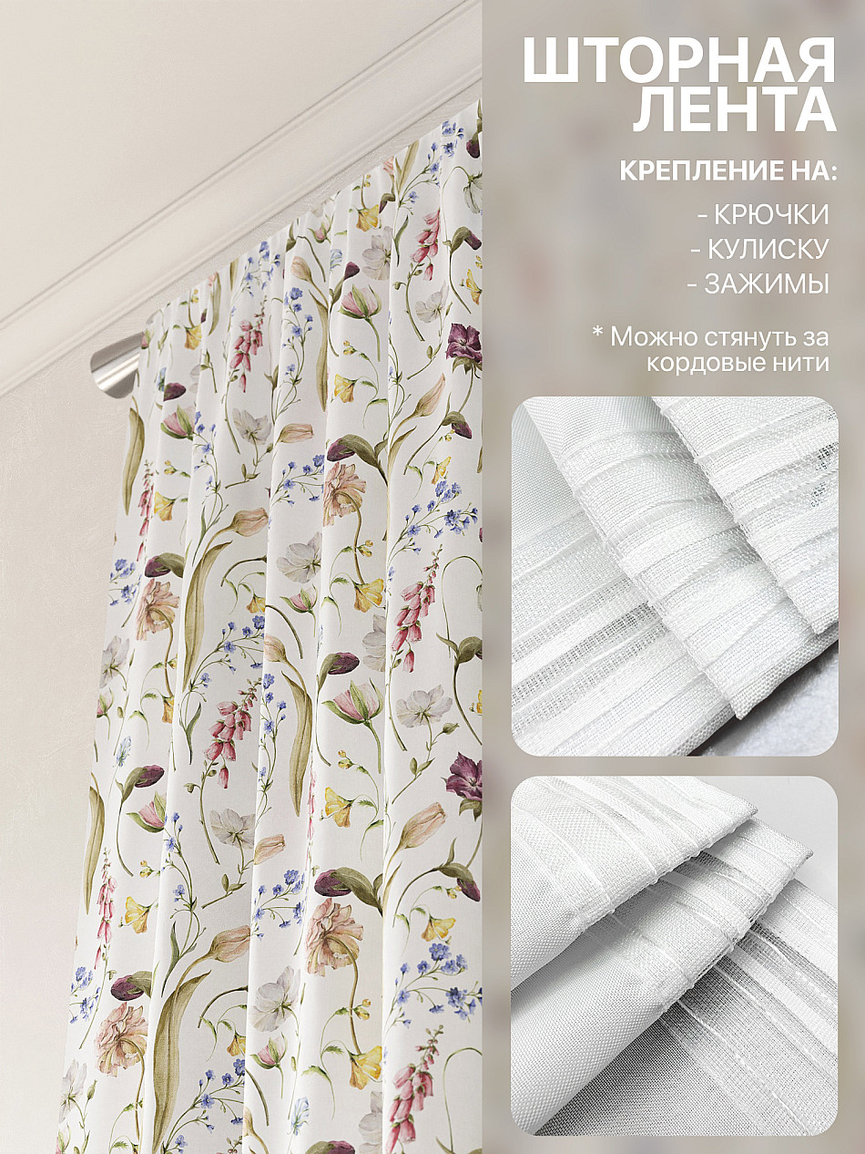 - Вид крепления Шторная лента (крючки) , Кулиска
