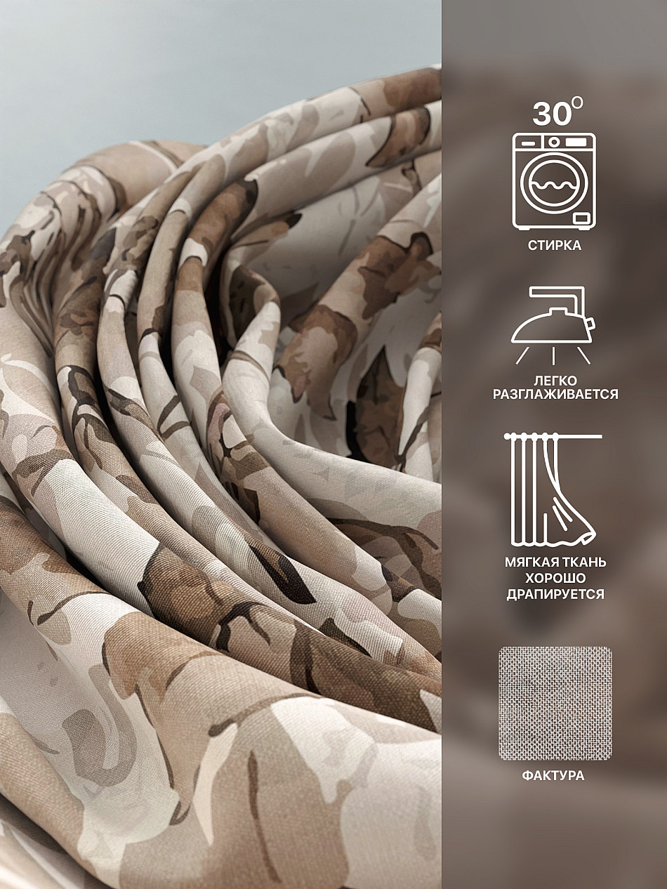 Портьеры 2 шт: Комплект штор из портьерной ткани с печатным рисунком. Фактура ткани прекрасно гармонирует с любым интерьером, а печатный рисунок дает широкие возможности обновить интерьер, фактически не требуя ремонта, за счет огромного выбора. Ткань износостойкая и не требует особого ухода, превосходно драпируется образуя струящиеся складки. Прекрасное решение для создания красоты и уюта с помощью уникальных дизайнов.