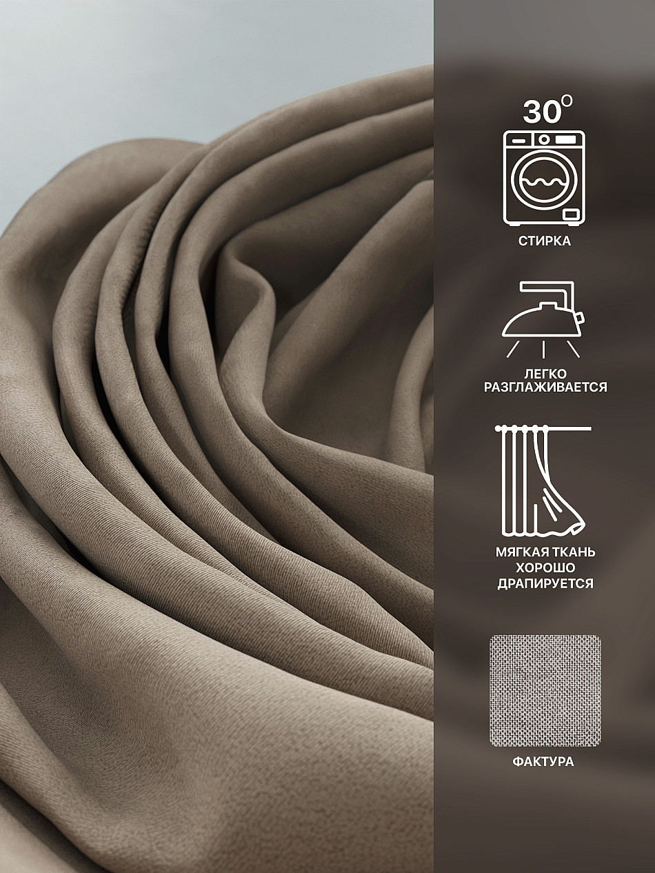 Портьера 150х270 см — 2 шт. ( Изменить высоту) Крепление: шторная лента (крючки), кулиска Подробнее