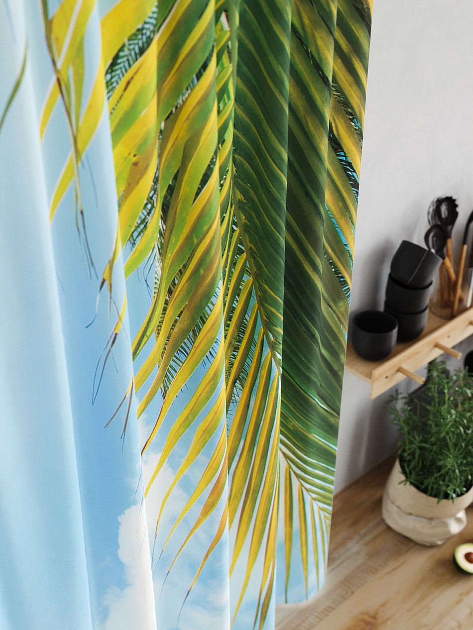 Шторы понравились, качество ткани хорошее. Но на самом деле шторы намного ярче, чем на фото на сайте. Пальмы на ярко голубом фоне.