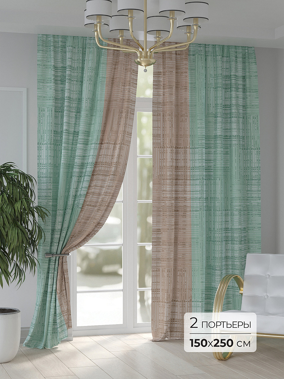 Портьера 2 шт. — 150х250 см. Крепление: шторная лента (крючки), кулиска Подробнее