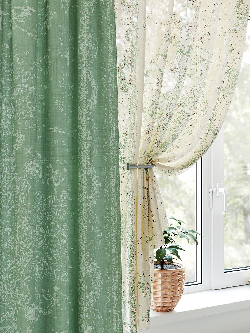 - Состав комплекта Портьера 150х250 см — 1 шт., вуаль 150х180 см — 2 шт.
