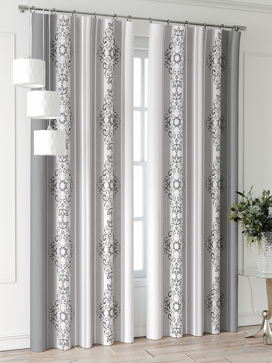 Портьеры 2 шт: Комплект штор из портьерной ткани с печатным рисунком. Фактура ткани прекрасно гармонирует с любым интерьером, а печатный рисунок дает широкие возможности обновить интерьер, фактически не требуя ремонта, за счет огромного выбора. Ткань износостойкая и не требует особого ухода, превосходно драпируется образуя струящиеся складки. Прекрасное решение для создания красоты и уюта с помощью уникальных дизайнов.