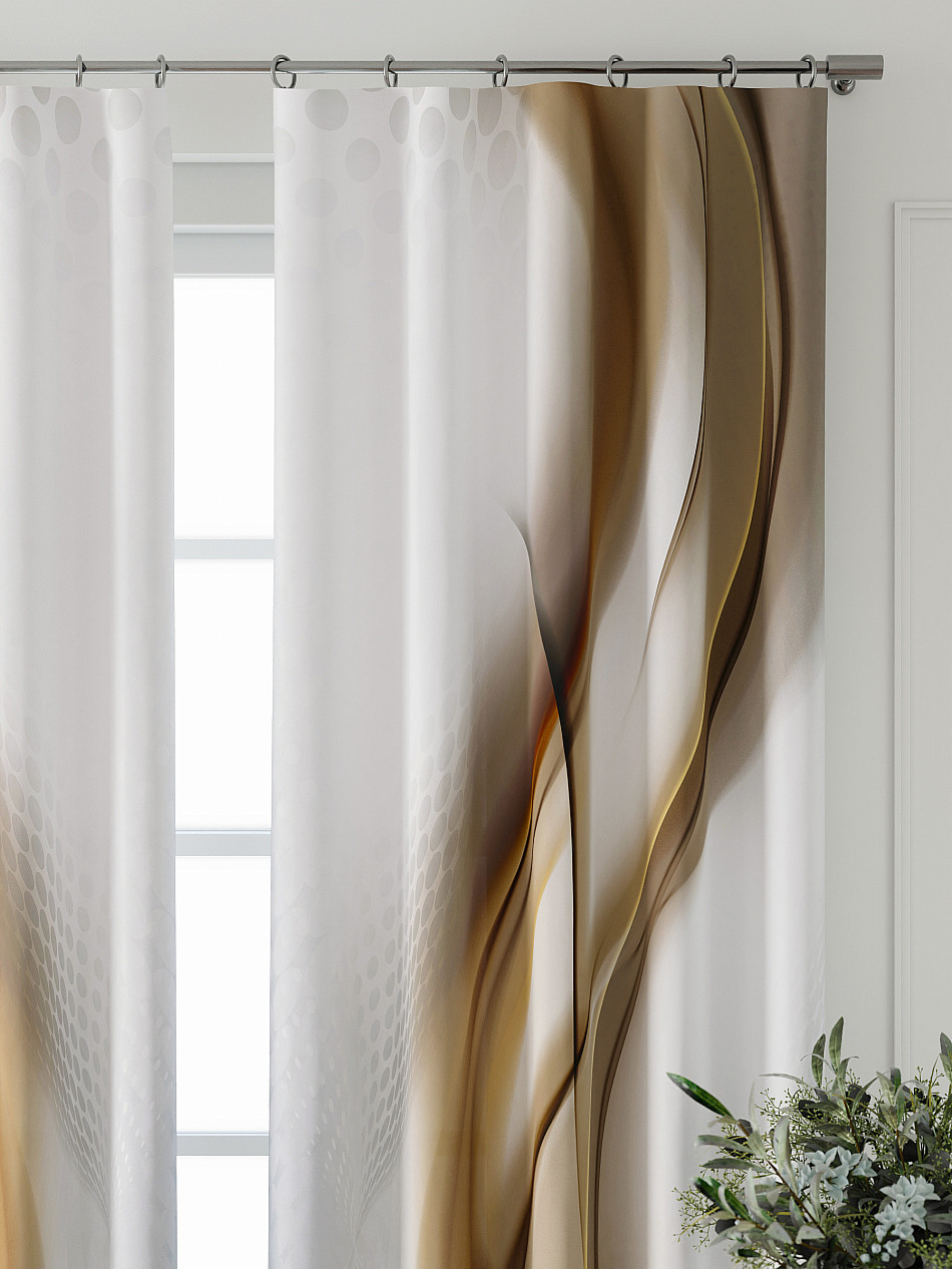 Портьера 2 шт. Подхват - доп.услуга. Комплект штор из легкой портьерной ткани (габардин) оформлен печатным рисунком. Печатный рисунок дает широкие возможности обновить интерьер фактически нет требуя ремонта за счет огромного выбора. Ткани с печатным рисунком безопасны и не содержат токсичных веществ. Не смотря на то что, материал легкий, он имеет высокую плотность, мало загрязнятся и не требует особого ухода даже после стирки, что важно для кухонных занавесок. Шторы не выцветают, не растягиваются, превосходно драпируются, образуя струящиеся складки. Прекрасное решение для создания красоты и уюта с помощью уникальных дизайнов.
