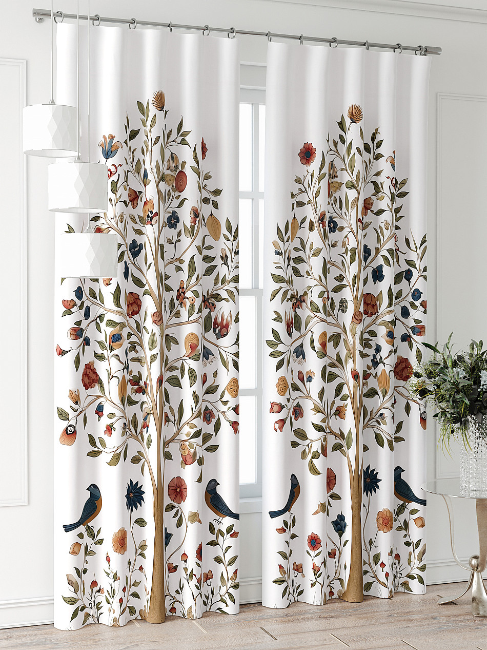 Дерево Птицы Растения Фото принтАксессуары для оформления штор: