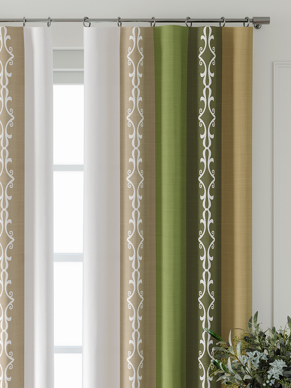 Портьера 2 шт. Подхват - доп.услуга. Комплект штор из легкой портьерной ткани (габардин) оформлен печатным рисунком. Печатный рисунок дает широкие возможности обновить интерьер фактически нет требуя ремонта за счет огромного выбора. Ткани с печатным рисунком безопасны и не содержат токсичных веществ. Не смотря на то что, материал легкий, он имеет высокую плотность, мало загрязнятся и не требует особого ухода даже после стирки, что важно для кухонных занавесок. Шторы не выцветают, не растягиваются, превосходно драпируются, образуя струящиеся складки. Прекрасное решение для создания красоты и уюта с помощью уникальных дизайнов.