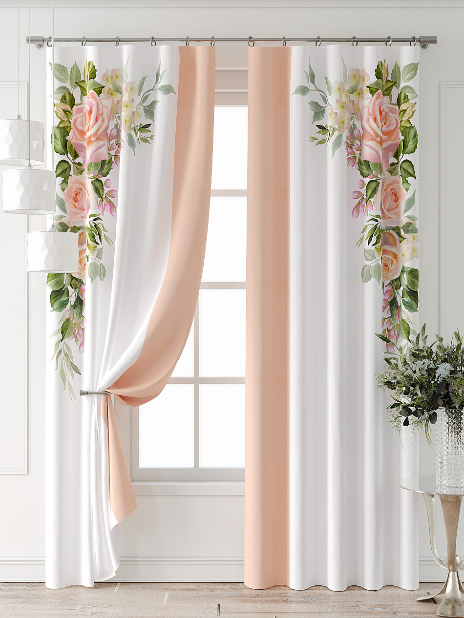 Комбинированные Прованс С розами Фото принт ЦветочныйАксессуары для оформления штор: