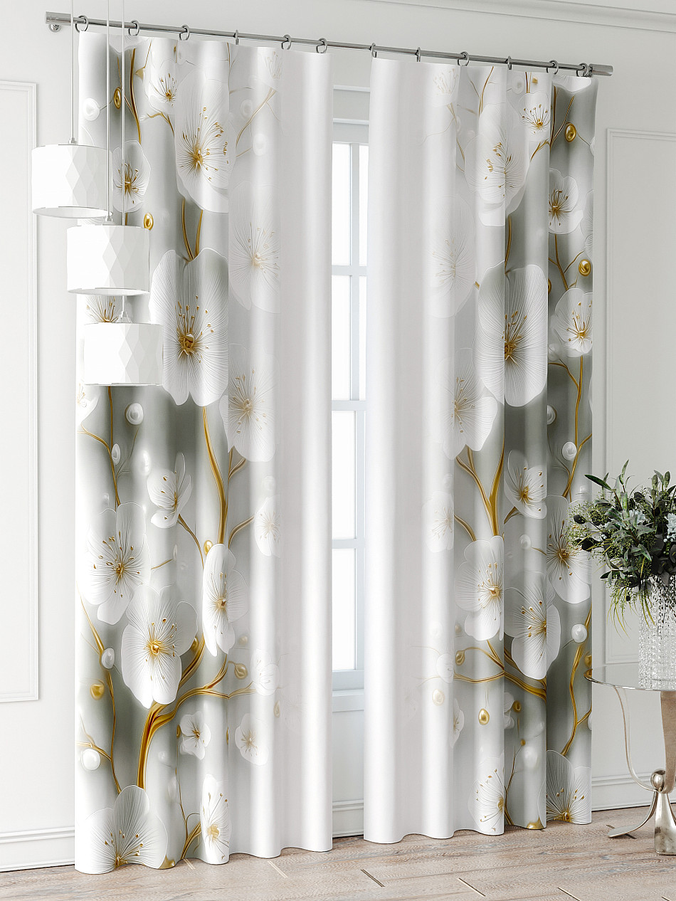 Портьера 2 шт. Подхват - доп.услуга. Комплект штор из легкой портьерной ткани (габардин) оформлен печатным рисунком. Печатный рисунок дает широкие возможности обновить интерьер фактически нет требуя ремонта за счет огромного выбора. Ткани с печатным рисунком безопасны и не содержат токсичных веществ. Не смотря на то что, материал легкий, он имеет высокую плотность, мало загрязнятся и не требует особого ухода даже после стирки, что важно для кухонных занавесок. Шторы не выцветают, не растягиваются, превосходно драпируются, образуя струящиеся складки. Прекрасное решение для создания красоты и уюта с помощью уникальных дизайнов.