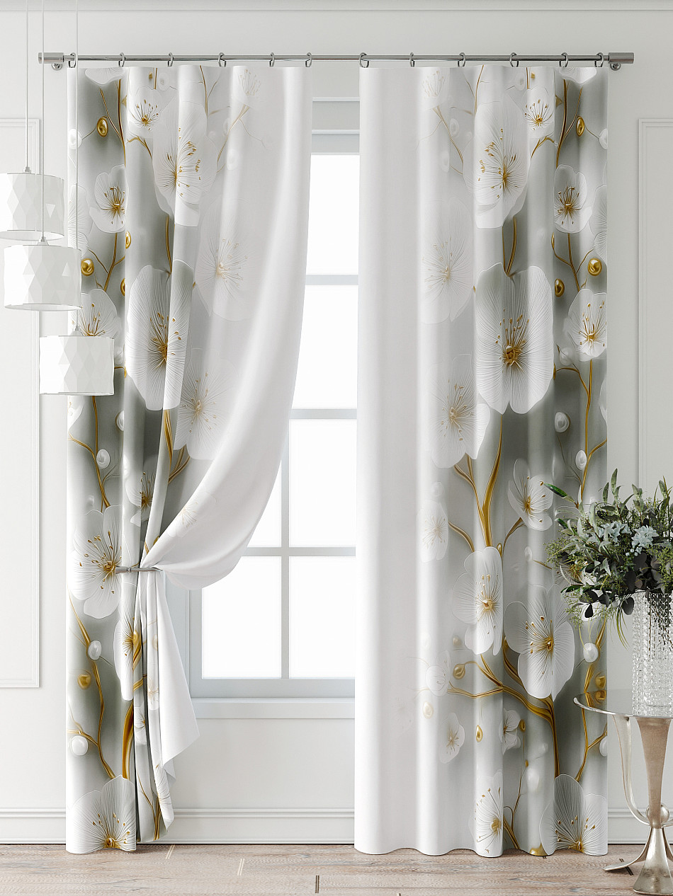 Прованс С сакурой Фото принт ЦветочныйАксессуары для оформления штор: