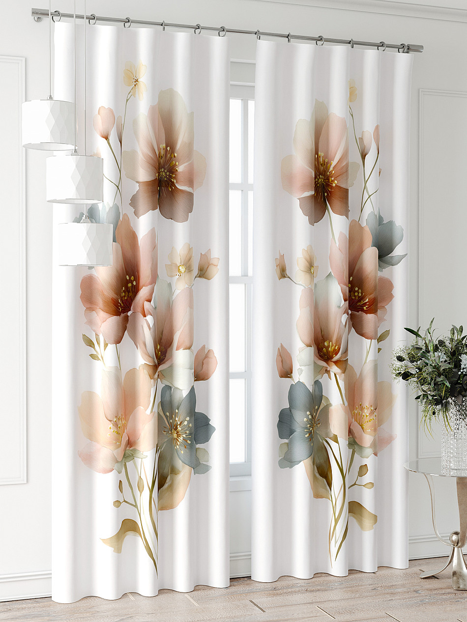 Портьера 2 шт. Подхват - доп.услуга. Комплект штор из легкой портьерной ткани (габардин) оформлен печатным рисунком. Печатный рисунок дает широкие возможности обновить интерьер фактически нет требуя ремонта за счет огромного выбора. Ткани с печатным рисунком безопасны и не содержат токсичных веществ. Не смотря на то что, материал легкий, он имеет высокую плотность, мало загрязнятся и не требует особого ухода даже после стирки, что важно для кухонных занавесок. Шторы не выцветают, не растягиваются, превосходно драпируются, образуя струящиеся складки. Прекрасное решение для создания красоты и уюта с помощью уникальных дизайнов.