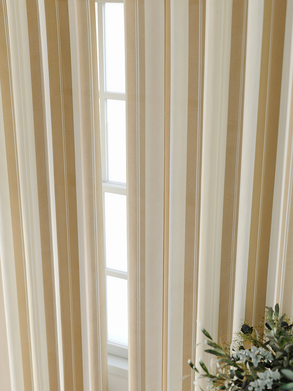 Габардин представляет собой целую группу тканей, которые отличаются содержанием и сочетанием различных волокон – хлопка, шелка, шерсти или синтетики. В зависимости от состава материала, шторы из габардина могут быть разными по плотности и внешнему виду, но всегда отличаются характерным декоративным рубчиком на поверхности. Габардин – идеальная ткань для пошива штор, поскольку она отлично дышит, не мнется, легкая и мягкая на ощупь, но при этом прочная и хорошо защищает от солнечных лучей.
