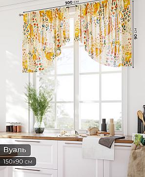 Комплект штор из легкой вуали оформлен печатным рисунком. Печатный рисунок дает широкие возможности обновить интерьер фактически нет требуя ремонта за счет огромного выбора. Ткани с печатным рисунком безопасны и не содержат токсичных веществ. Не смотря на то что, материал легкий, он имеет высокую плотность, мало загрязнятся и не требует особого ухода даже после стирки, что важно для кухонных занавесок. Шторы не выцветают, не растягиваются, превосходно драпируются, образуя струящиеся складки. Прекрасное решение для создания красоты и уюта с помощью уникальных дизайнов.