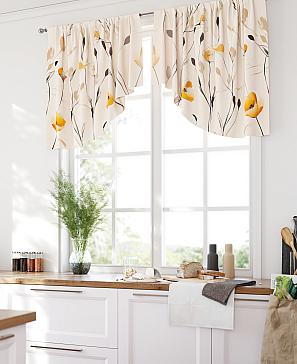 Комплект штор из легкой вуали оформлен печатным рисунком. Печатный рисунок дает широкие возможности обновить интерьер фактически нет требуя ремонта за счет огромного выбора. Ткани с печатным рисунком безопасны и не содержат токсичных веществ. Не смотря на то что, материал легкий, он имеет высокую плотность, мало загрязнятся и не требует особого ухода даже после стирки, что важно для кухонных занавесок. Шторы не выцветают, не растягиваются, превосходно драпируются, образуя струящиеся складки. Прекрасное решение для создания красоты и уюта с помощью уникальных дизайнов.
