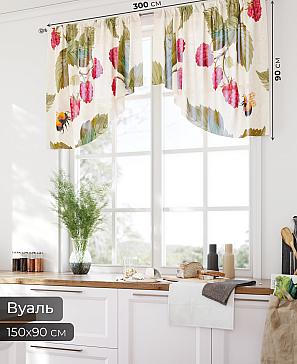 Комплект штор из легкой вуали оформлен печатным рисунком. Печатный рисунок дает широкие возможности обновить интерьер фактически нет требуя ремонта за счет огромного выбора. Ткани с печатным рисунком безопасны и не содержат токсичных веществ. Не смотря на то что, материал легкий, он имеет высокую плотность, мало загрязнятся и не требует особого ухода даже после стирки, что важно для кухонных занавесок. Шторы не выцветают, не растягиваются, превосходно драпируются, образуя струящиеся складки. Прекрасное решение для создания красоты и уюта с помощью уникальных дизайнов.