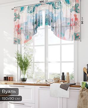 Комплект штор из легкой вуали оформлен печатным рисунком. Печатный рисунок дает широкие возможности обновить интерьер фактически нет требуя ремонта за счет огромного выбора. Ткани с печатным рисунком безопасны и не содержат токсичных веществ. Не смотря на то что, материал легкий, он имеет высокую плотность, мало загрязнятся и не требует особого ухода даже после стирки, что важно для кухонных занавесок. Шторы не выцветают, не растягиваются, превосходно драпируются, образуя струящиеся складки. Прекрасное решение для создания красоты и уюта с помощью уникальных дизайнов.