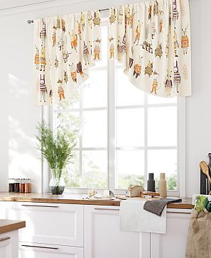 Комплект штор из легкой вуали оформлен печатным рисунком. Печатный рисунок дает широкие возможности обновить интерьер фактически нет требуя ремонта за счет огромного выбора. Ткани с печатным рисунком безопасны и не содержат токсичных веществ. Не смотря на то что, материал легкий, он имеет высокую плотность, мало загрязнятся и не требует особого ухода даже после стирки, что важно для кухонных занавесок. Шторы не выцветают, не растягиваются, превосходно драпируются, образуя струящиеся складки. Прекрасное решение для создания красоты и уюта с помощью уникальных дизайнов.