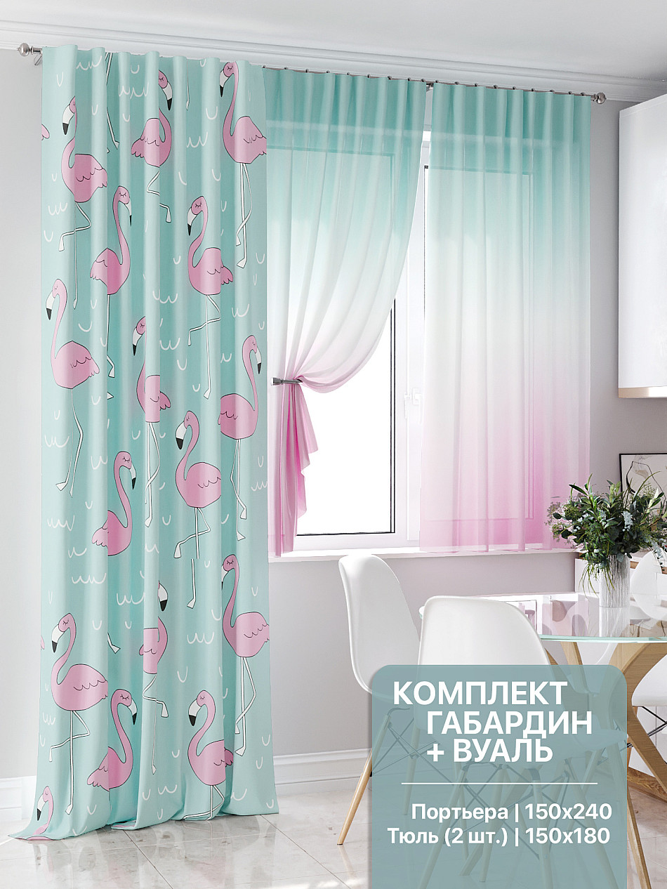 Портьера 150х240 см — 1 шт., вуаль 150х180 см — 2 шт. ( Уменьшить высоту ) Подробнее