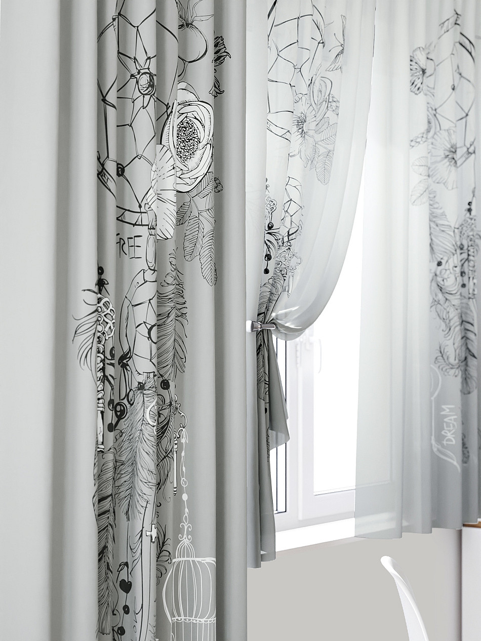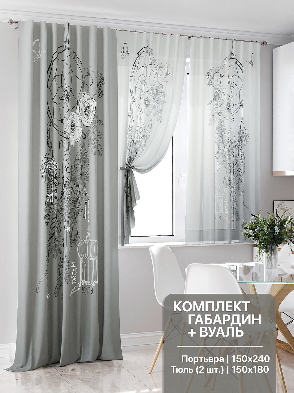 Портьера 150х240 см — 1 шт., вуаль 150х180 см — 2 шт. ( Уменьшить высоту ) Подробнее