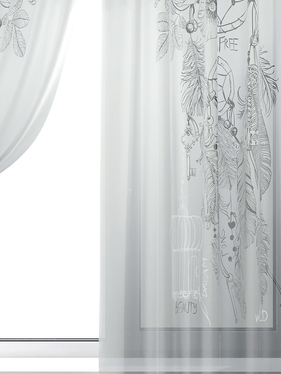 Тюль 2 шт.: Легкая основа (вуаль) оформлена современным рисунком. Ширина — 150 см., высота — 180 см., крепление — шторная лента (крючки).