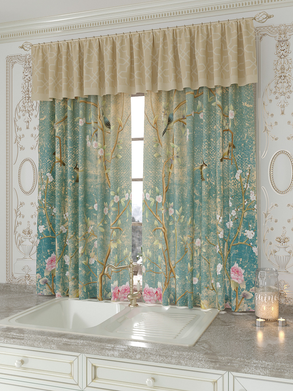 Портьеры 150х160 см. — 2 шт., Ламбрекен 300х40 см. — 1 шт. Комплект штор из легкой портьерной ткани (габардин) оформлен печатным рисунком. Печатный рисунок дает широкие возможности обновить интерьер фактически не требуя ремонта за счет огромного выбора. Ткани с печатным рисунком безопасны и не содержат токсичных веществ. Не смотря на то, что материал легкий, он имеет высокую плотность, мало загрязнятся и не требует особого ухода даже после стирки, что важно для кухонных занавесок. Шторы не выцветают, не растягиваются, превосходно драпируются, образуя струящиеся складки. Прекрасное решение для создания красоты и уюта с помощью уникальных дизайнов.