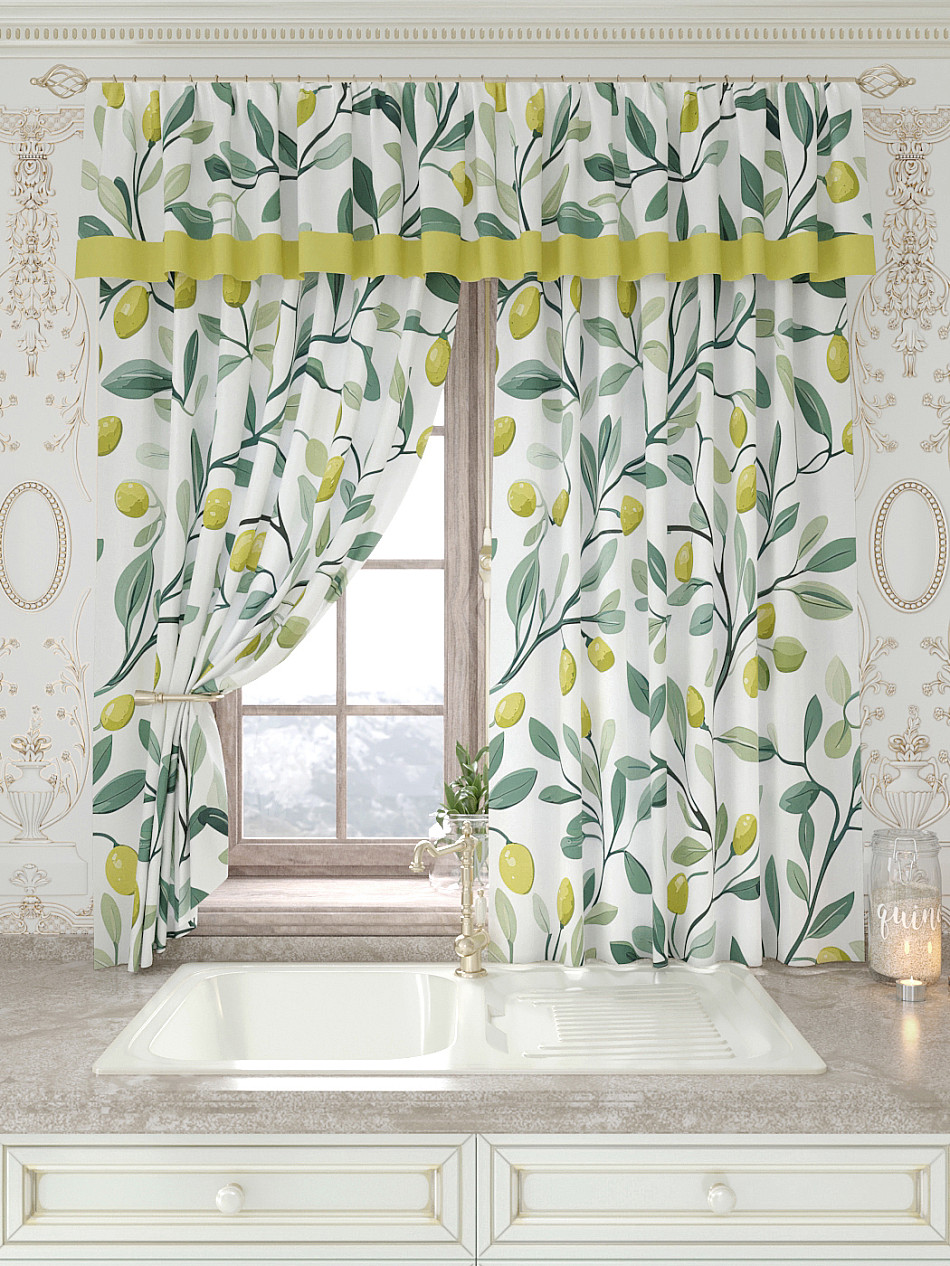 Портьеры 150х160 см. — 2 шт., Ламбрекен 300х40 см. — 1 шт. Комплект штор из легкой портьерной ткани (габардин) оформлен печатным рисунком. Печатный рисунок дает широкие возможности обновить интерьер фактически не требуя ремонта за счет огромного выбора. Ткани с печатным рисунком безопасны и не содержат токсичных веществ. Не смотря на то, что материал легкий, он имеет высокую плотность, мало загрязнятся и не требует особого ухода даже после стирки, что важно для кухонных занавесок. Шторы не выцветают, не растягиваются, превосходно драпируются, образуя струящиеся складки. Прекрасное решение для создания красоты и уюта с помощью уникальных дизайнов.