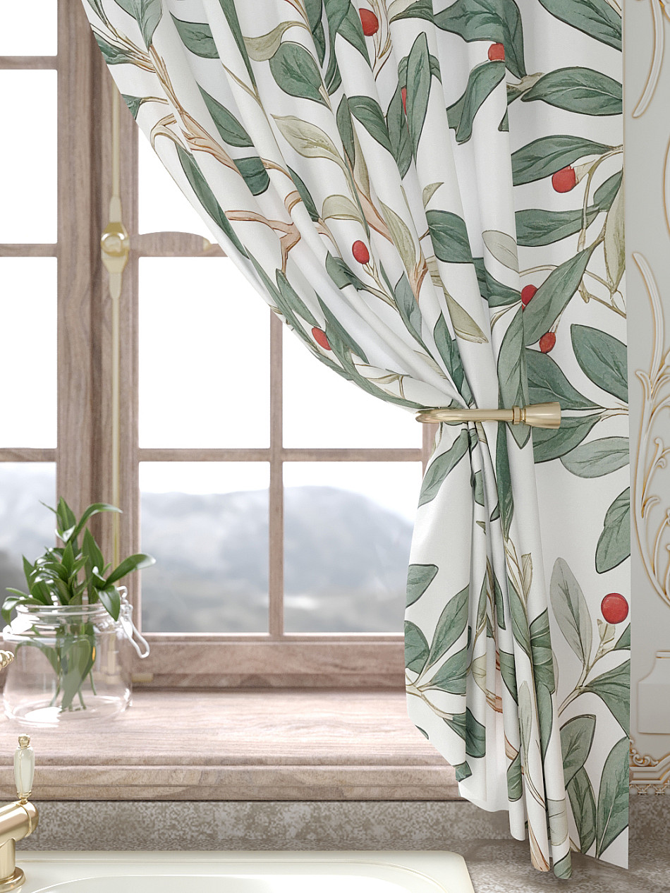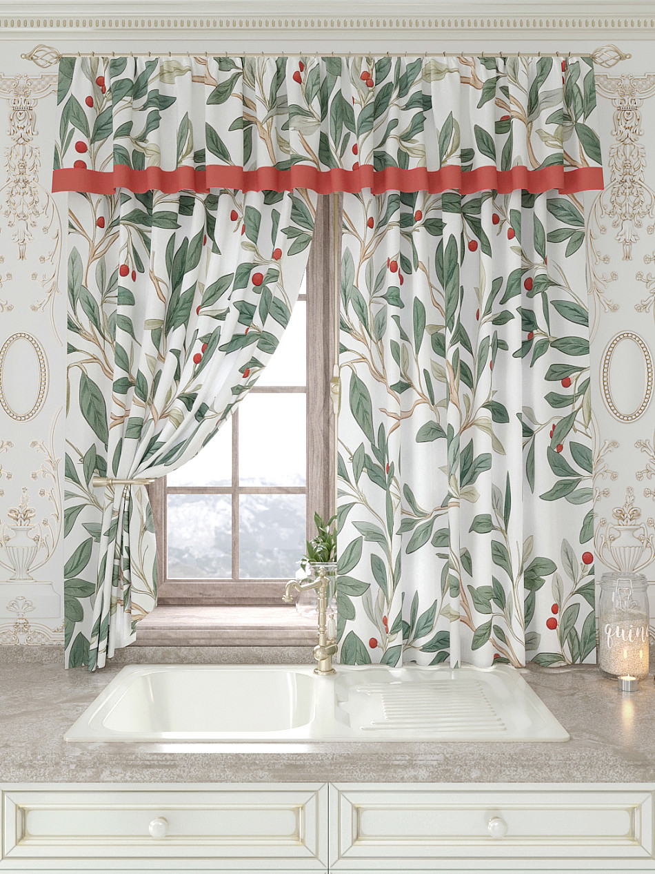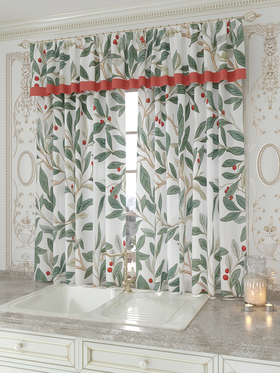 Портьеры 150х160 см. — 2 шт., Ламбрекен 300х40 см. — 1 шт. Комплект штор из легкой портьерной ткани (габардин) оформлен печатным рисунком. Печатный рисунок дает широкие возможности обновить интерьер фактически не требуя ремонта за счет огромного выбора. Ткани с печатным рисунком безопасны и не содержат токсичных веществ. Не смотря на то, что материал легкий, он имеет высокую плотность, мало загрязнятся и не требует особого ухода даже после стирки, что важно для кухонных занавесок. Шторы не выцветают, не растягиваются, превосходно драпируются, образуя струящиеся складки. Прекрасное решение для создания красоты и уюта с помощью уникальных дизайнов.