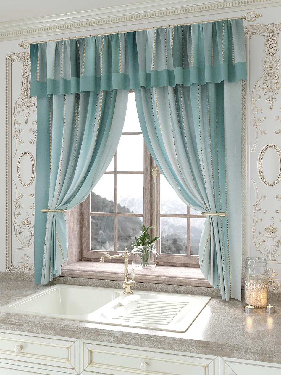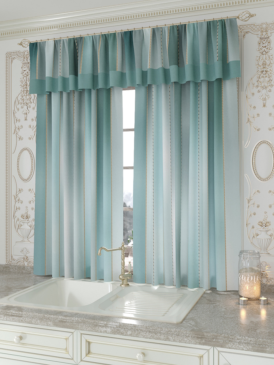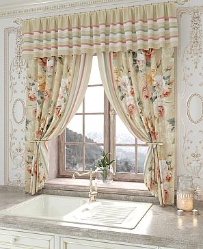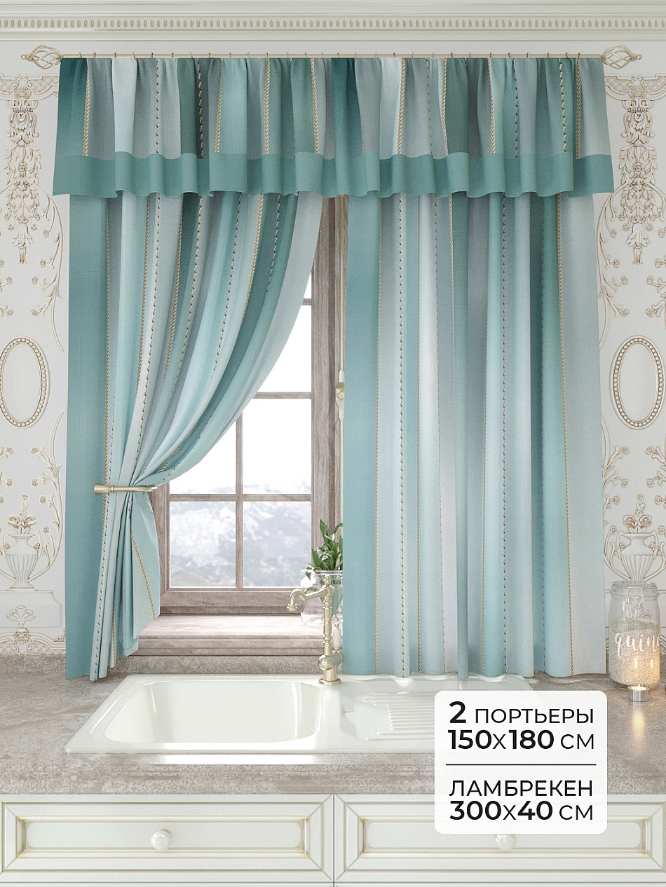 Портьеры 150х160 см. — 2 шт., Ламбрекен 300х40 см. — 1 шт. Комплект штор из легкой портьерной ткани (габардин) оформлен печатным рисунком. Печатный рисунок дает широкие возможности обновить интерьер фактически не требуя ремонта за счет огромного выбора. Ткани с печатным рисунком безопасны и не содержат токсичных веществ. Не смотря на то, что материал легкий, он имеет высокую плотность, мало загрязнятся и не требует особого ухода даже после стирки, что важно для кухонных занавесок. Шторы не выцветают, не растягиваются, превосходно драпируются, образуя струящиеся складки. Прекрасное решение для создания красоты и уюта с помощью уникальных дизайнов.