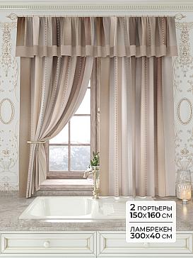 - Состав комплекта Портьеры 150х160 см. — 2 шт., Ламбрекен 300х40 см. — 1 шт.