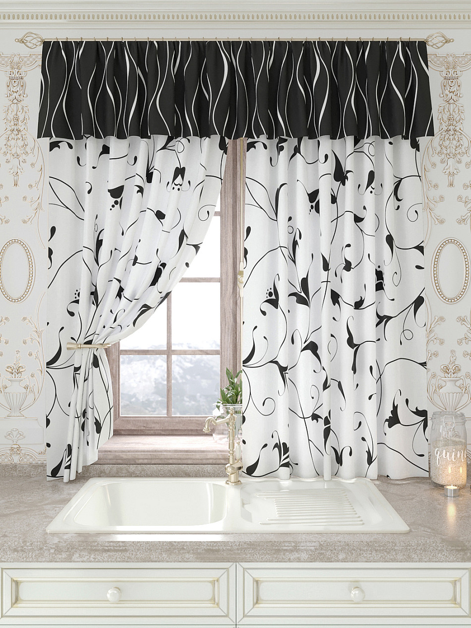 Портьеры 150х160 см. — 2 шт., Ламбрекен 300х40 см. — 1 шт. Комплект штор из легкой портьерной ткани (габардин) оформлен печатным рисунком. Печатный рисунок дает широкие возможности обновить интерьер фактически не требуя ремонта за счет огромного выбора. Ткани с печатным рисунком безопасны и не содержат токсичных веществ. Не смотря на то, что материал легкий, он имеет высокую плотность, мало загрязнятся и не требует особого ухода даже после стирки, что важно для кухонных занавесок. Шторы не выцветают, не растягиваются, превосходно драпируются, образуя струящиеся складки. Прекрасное решение для создания красоты и уюта с помощью уникальных дизайнов.