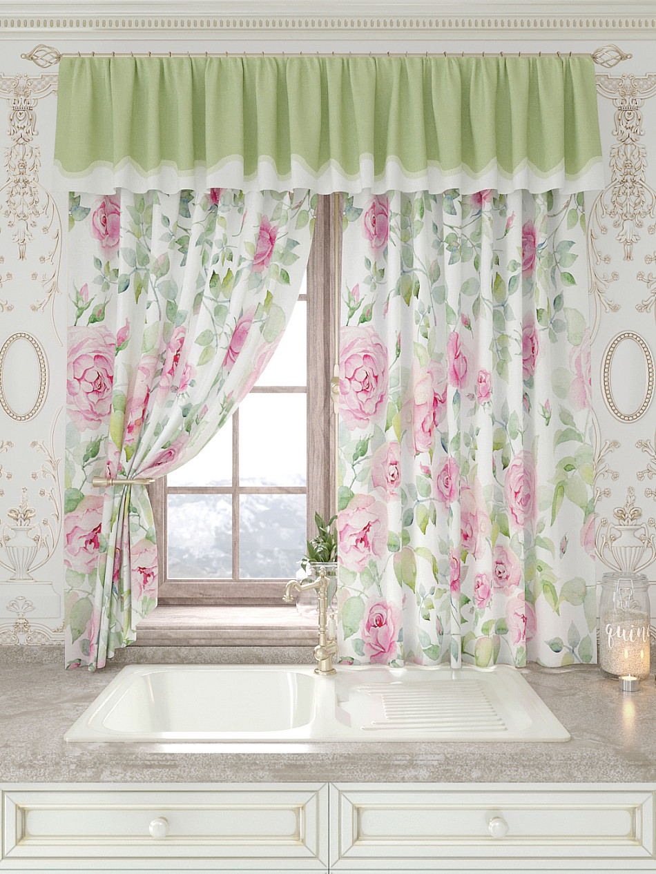 Портьеры 150х160 см. — 2 шт., Ламбрекен 300х40 см. — 1 шт. Комплект штор из легкой портьерной ткани (габардин) оформлен печатным рисунком. Печатный рисунок дает широкие возможности обновить интерьер фактически не требуя ремонта за счет огромного выбора. Ткани с печатным рисунком безопасны и не содержат токсичных веществ. Не смотря на то, что материал легкий, он имеет высокую плотность, мало загрязнятся и не требует особого ухода даже после стирки, что важно для кухонных занавесок. Шторы не выцветают, не растягиваются, превосходно драпируются, образуя струящиеся складки. Прекрасное решение для создания красоты и уюта с помощью уникальных дизайнов.